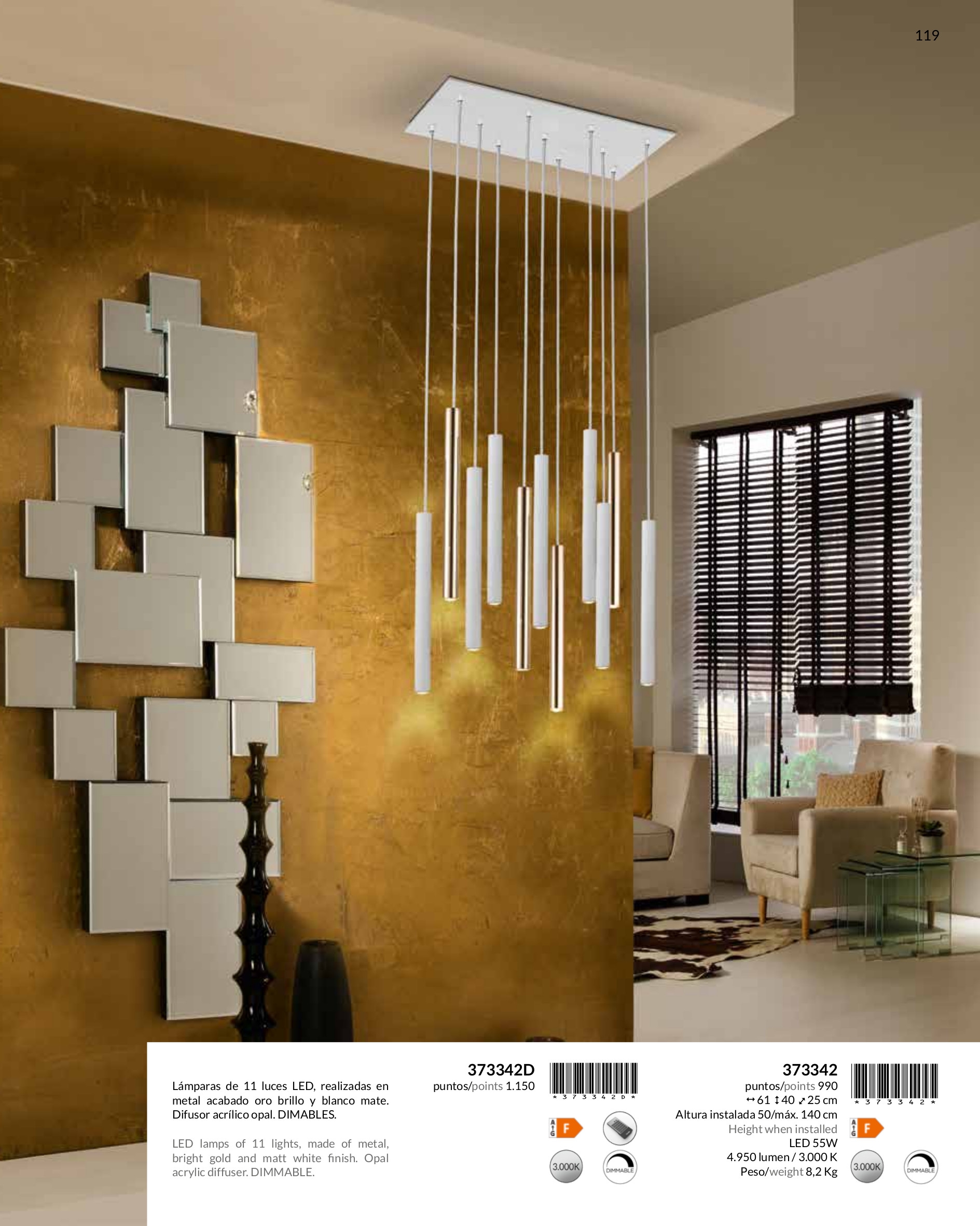Лед полилей 373342 VARAS LAMP, 11L., GOLD/WHITE ще осигури комфорт и естетика във всяко помещение, в което се постави. Цялостната визия и дизайн на led лампата и вложените в изработката й материали, като метал в цвят лъскаво злато, метал в матово бял цвят, дифузьор от опалово бял полимер, ще допринесат за един неповторим стил. Благодарение на дългогодишния опит в производството на лед осветление, качествените материали и строгия контрол на качеството на изработка на производителя Schuller (Испания), 373342 VARAS LAMP, 11L., GOLD/WHITE е на високо европейско ниво.