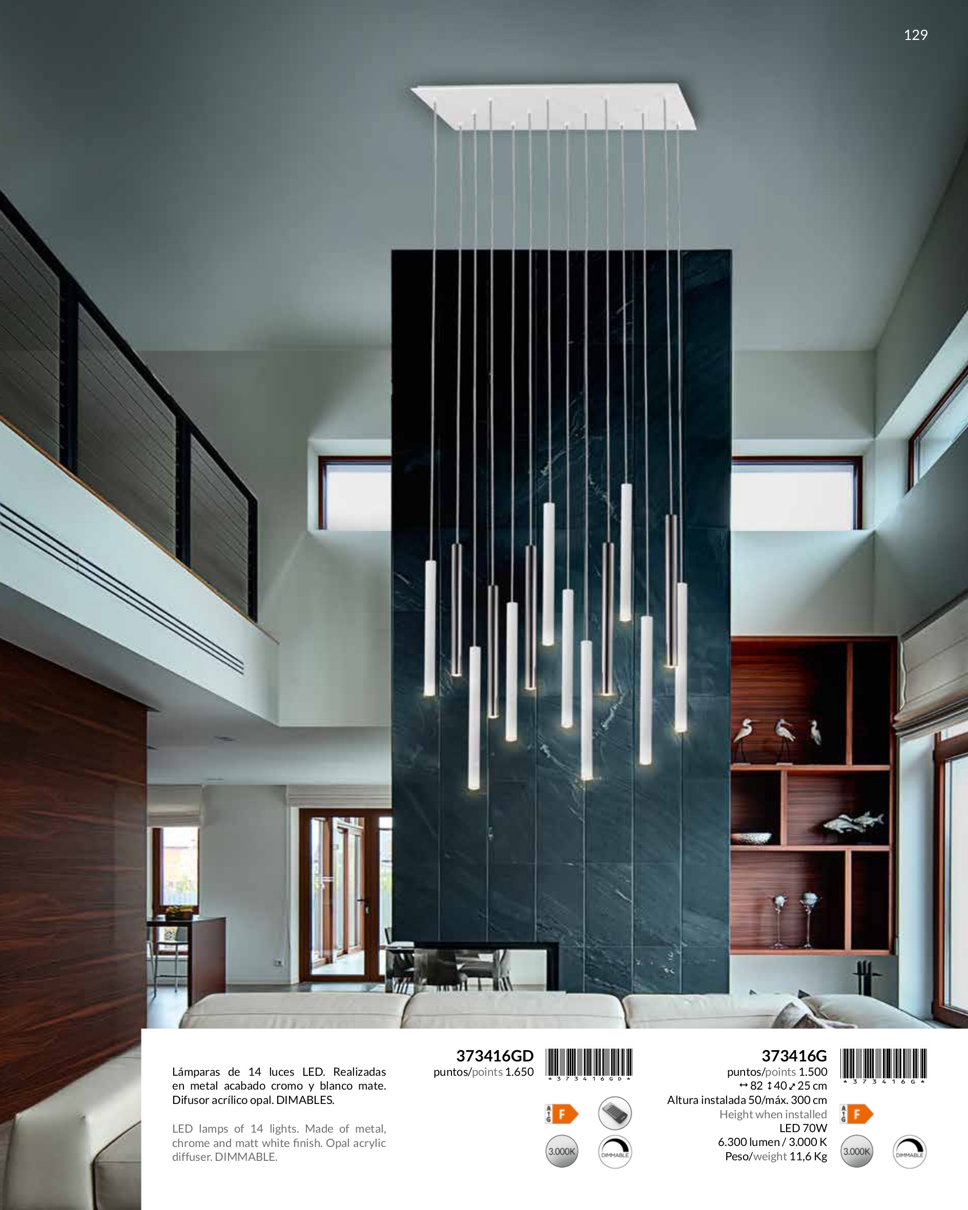 Осветителното тяло 373416GD VARAS LAMP CHROME/WHITE 14L. DIMM. MAX. 3 представлява лед полилей в съвременен стил. 373416GD VARAS LAMP CHROME/WHITE 14L. DIMM. MAX. 3 е от категорията и е подходящо за осветяване на различни помещения и пространства като: всекидневна / хол, спалня, кухня, трапезария, офис.