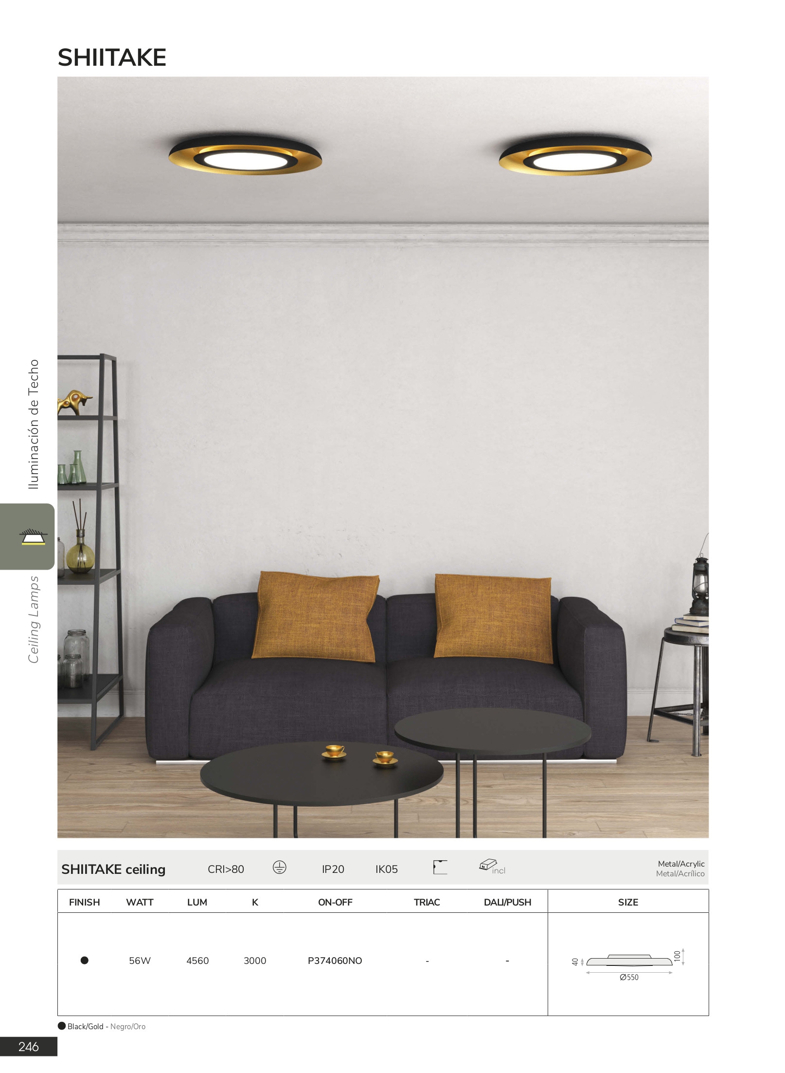 Осветителното тяло P374060NO (3740/55 60W/3200K Black/Gold Ceiling) ще осигури комфорт и естетика във всяко помещение, в което се постави. Цялостната визия и дизайн на лампата и вложените в изработката й материали, като метал в черен цвят, метал в цвят злато, полимер в бяло, ще допринесат за един неповторим стил. Благодарение на дългогодишния опит, качествените материали и строгия контрол на качеството на изработка на производителя ACB (Испания), P374060NO (3740/55 60W/3200K Black/Gold Ceiling) е на високо европейско ниво.