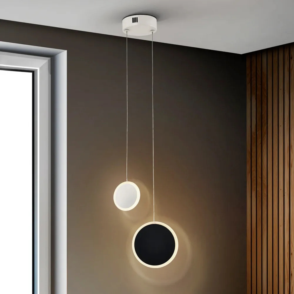 Осветителното тяло 403515 DUO - LAMP 2L WHITE-BLACK представлява пендел в съвременен, дизайнерски стил. 403515 DUO - LAMP 2L WHITE-BLACK е от категорията осветителни тела и е подходящо за осветяване на различни помещения и пространства като: всекидневна / хол, спалня, кухня, трапезария, коридор, антре, офис.