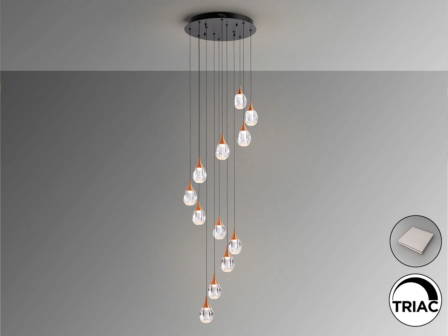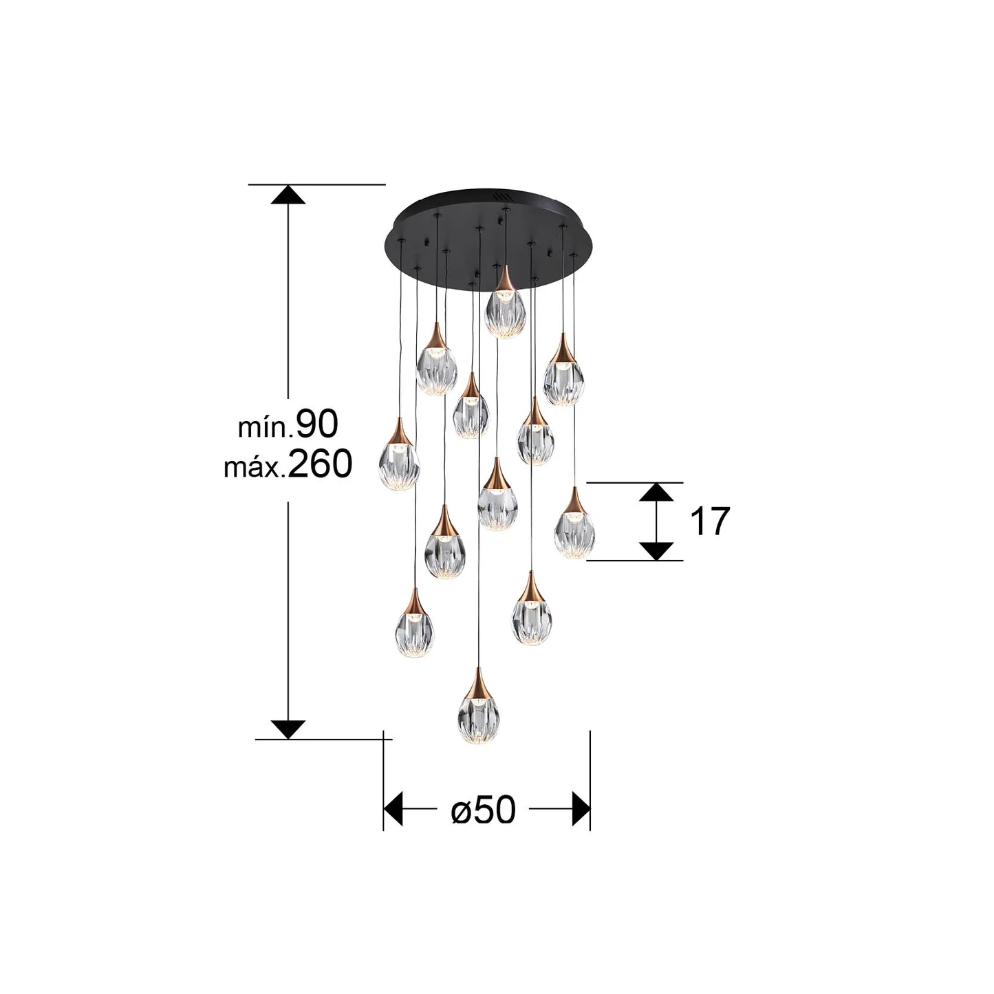 Лед полилей 403894 CORINA - LAMP 12L BLACK-COPPER ще осигури комфорт и естетика във всяко помещение, в което се постави. Цялостната визия и дизайн на led лампата и вложените в изработката й материали, като метал в матово черен цвят, абажури от прозрачен акрил, включен комплект за димиране, ще допринесат за един неповторим стил. Благодарение на дългогодишния опит в производството на лед осветление, качествените материали и строгия контрол на качеството на изработка на производителя Schuller (Испания), 403894 CORINA - LAMP 12L BLACK-COPPER е на високо европейско ниво.