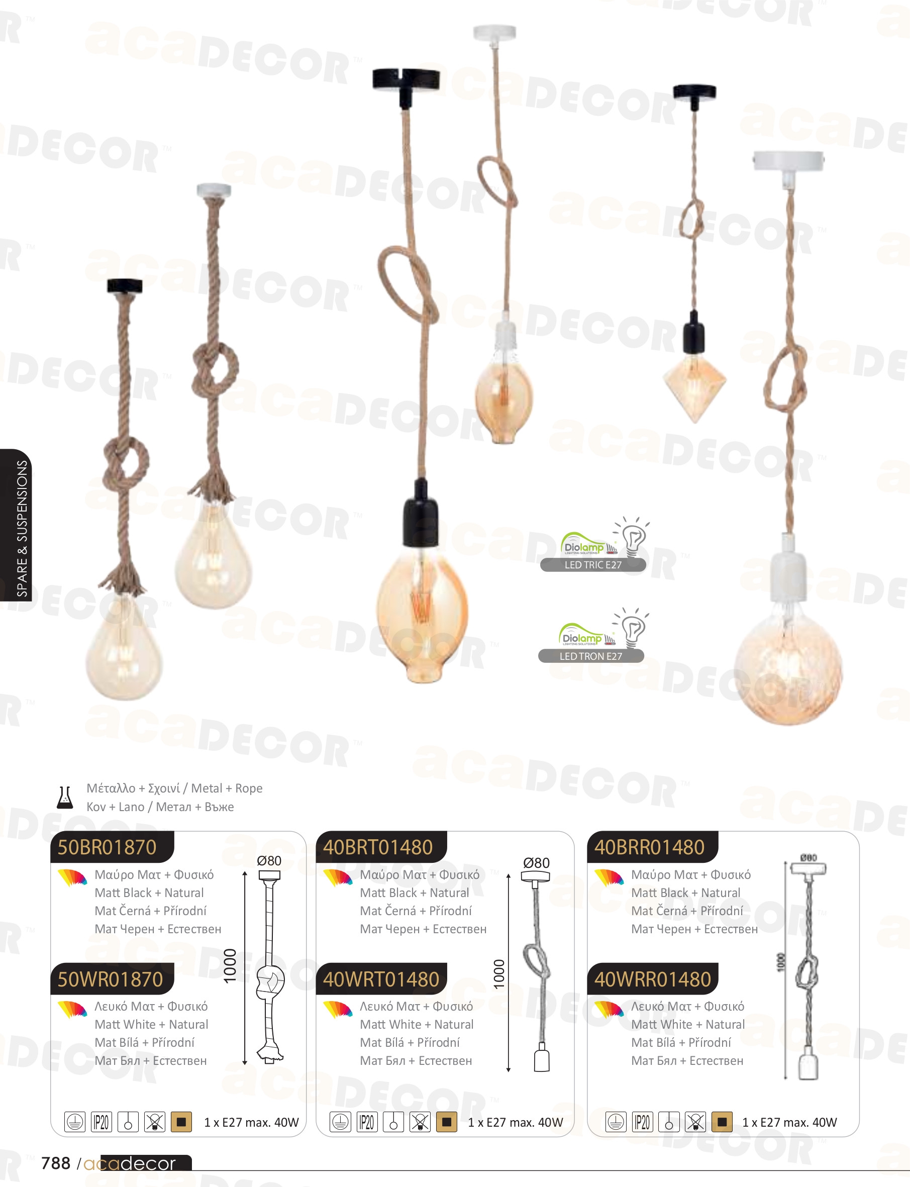 Осветителното тяло 40BRT ще осигури комфорт и естетика във всяко помещение, в което се постави. Цялостната визия и дизайн на лампата и вложените в изработката й материали, като метал в черен цвят, сплетено въже в естествен цвят, ще допринесат за един неповторим стил. Благодарение на дългогодишния опит, качествените материали и строгия контрол на качеството на изработка на производителя ACA-Lighting (Гърция), 40BRT е на високо европейско ниво.