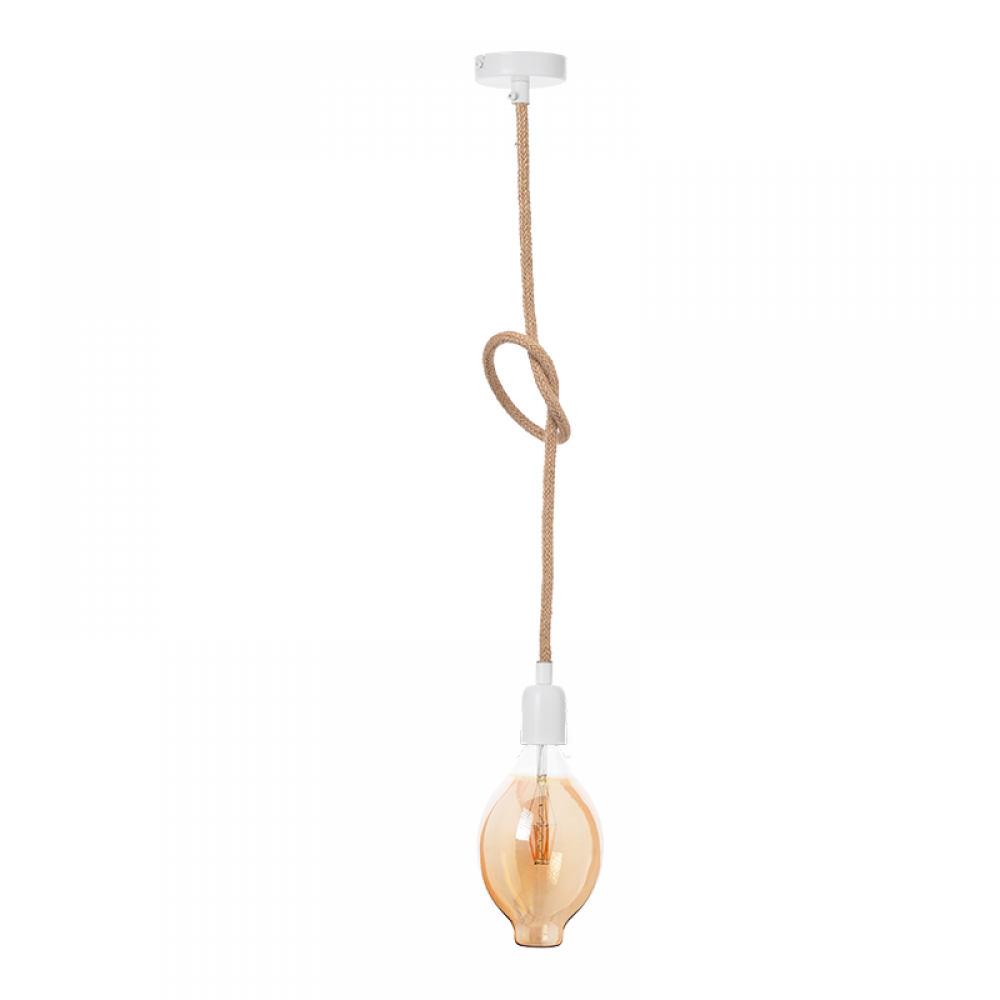 Стилът и естетиката на обстановката ще се обогатят благодарение, както на цялостната визия и дизайн на осветителното тяло, така и на вложените в изработката му, качествени материали, като: метал в бял цвят, сплетено въже в естествен цвят.