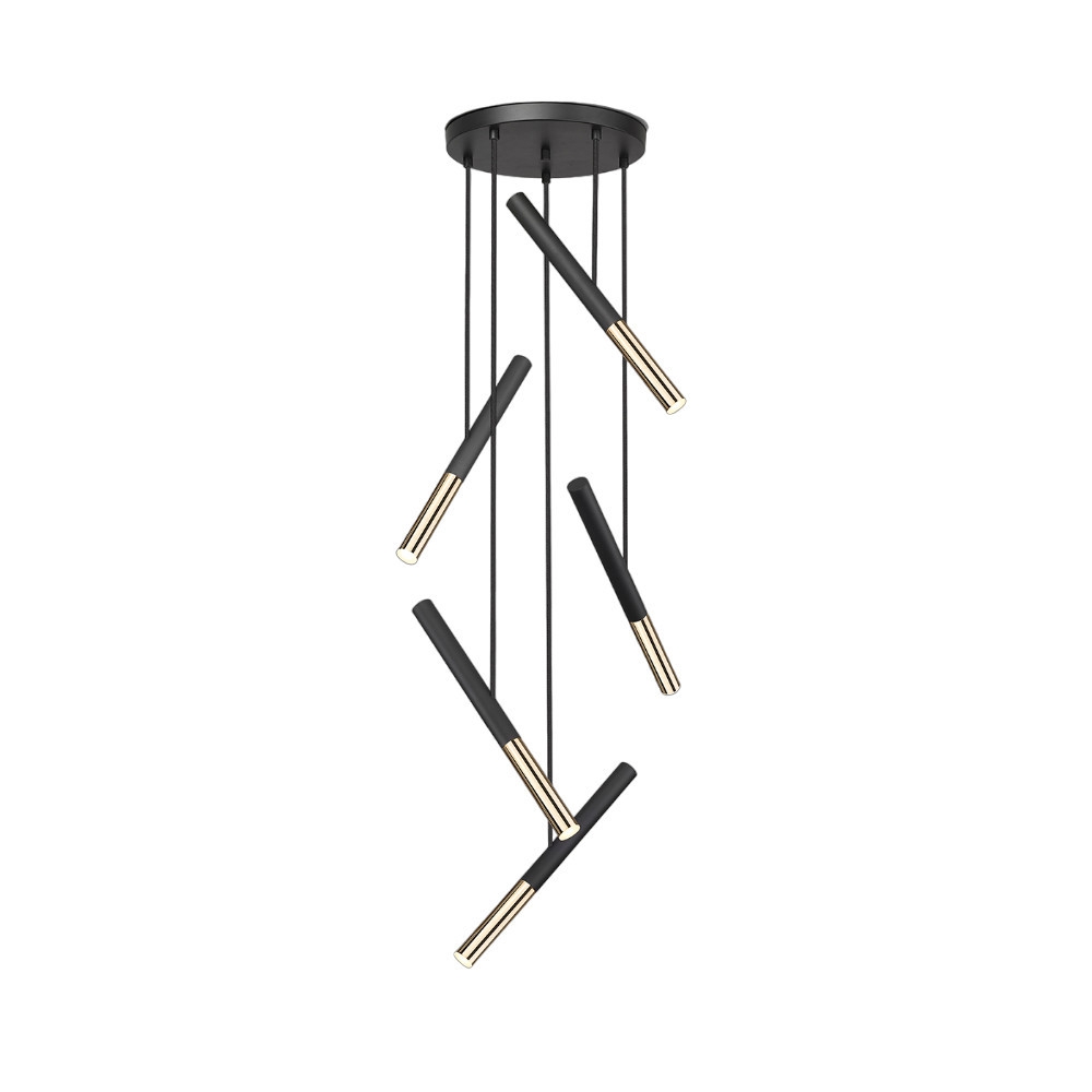 Осветителното тяло 451052D EDNA- LAMP 5L BLACK-GOLD DIMMABLE представлява лед полилей в съвременен стил. 451052D EDNA- LAMP 5L BLACK-GOLD DIMMABLE е от категорията и е подходящо за осветяване на различни помещения и пространства като: всекидневна / хол, спалня, кухня, трапезария, офис.