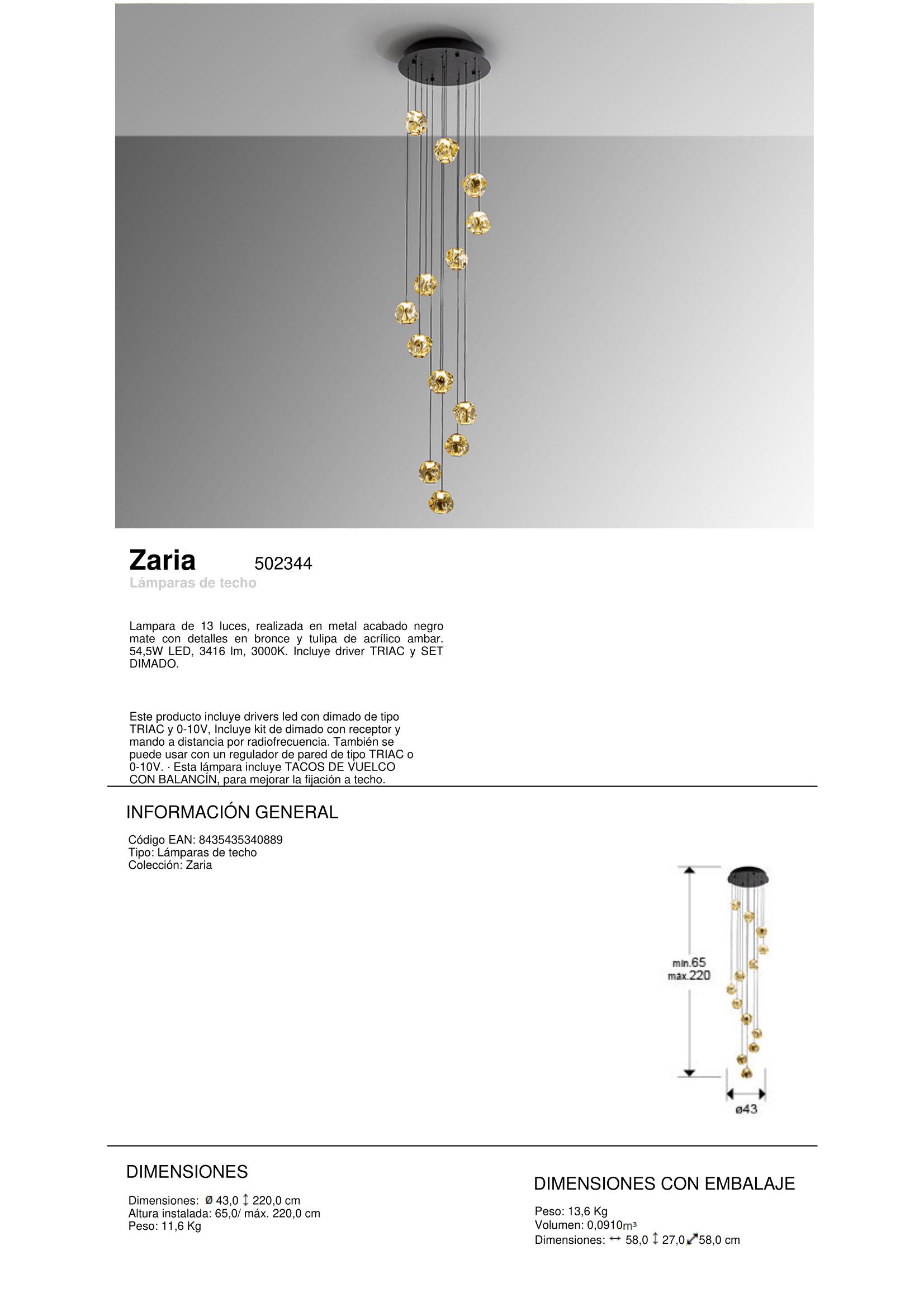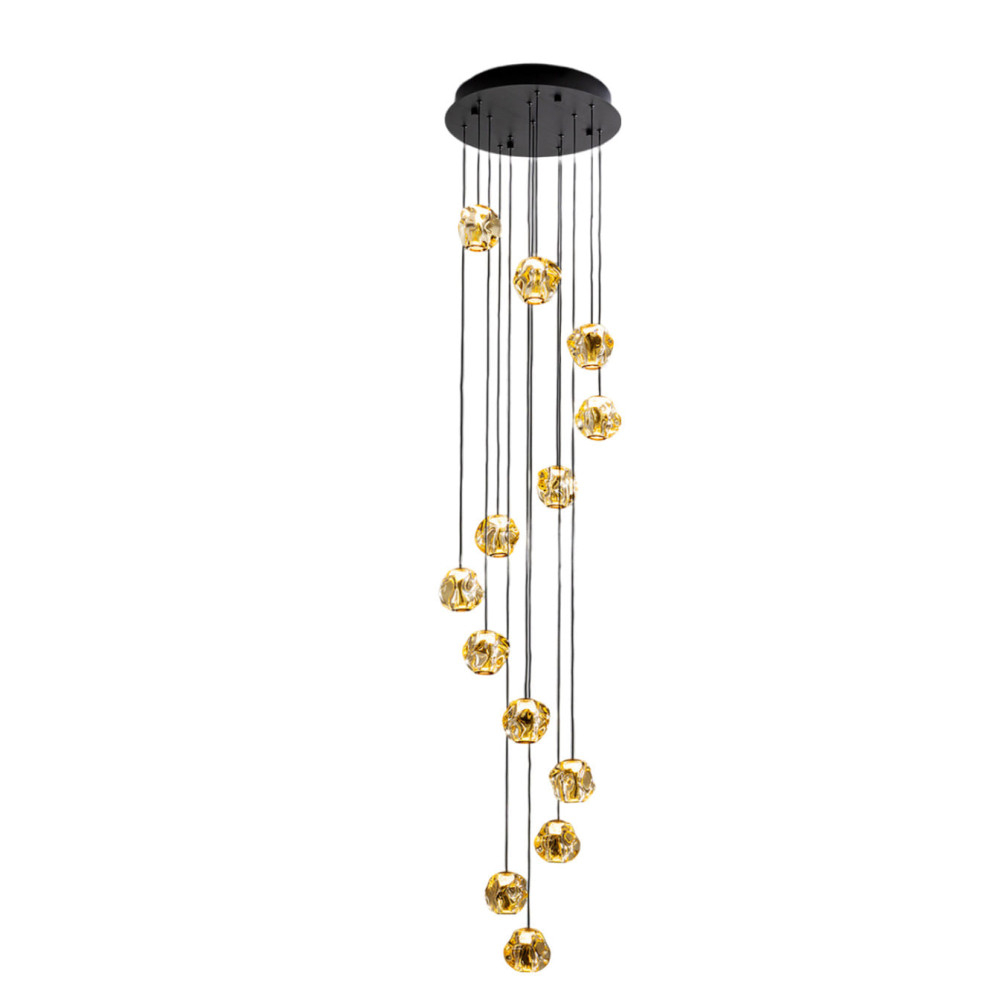 Осветителното тяло 502344 ZARIA-LAMP 13L-BLACK/BRONZE/AMBER D60 DIM представлява лед полилей в съвременен стил. 502344 ZARIA-LAMP 13L-BLACK/BRONZE/AMBER D60 DIM е от категорията и е подходящо за осветяване на различни помещения и пространства като: всекидневна / хол, спалня, кухня, трапезария, офис.