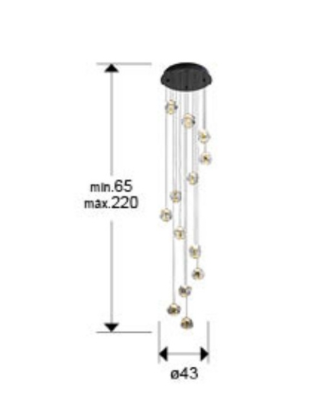 Осветителното тяло 502368 ZARIA- LAMP 13L nero/oro/transp d60 dimmable представлява полилей в съвременен стил. 502368 ZARIA- LAMP 13L nero/oro/transp d60 dimmable е от категорията осветителни тела и е подходящо за осветяване на различни помещения и пространства като: всекидневна / хол, спалня, кухня, трапезария, офис.