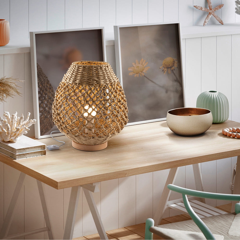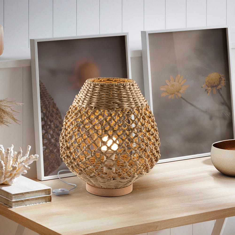 Осветителното тяло 514134 YAIZA - BRAIDED PAPER TABLE LAMP H35 представлява настолна лампа в съвременен стил. 514134 YAIZA - BRAIDED PAPER TABLE LAMP H35 е от категорията осветителни тела и е подходящо за осветяване на различни помещения и пространства като: всекидневна / хол, спалня, трапезария, офис.