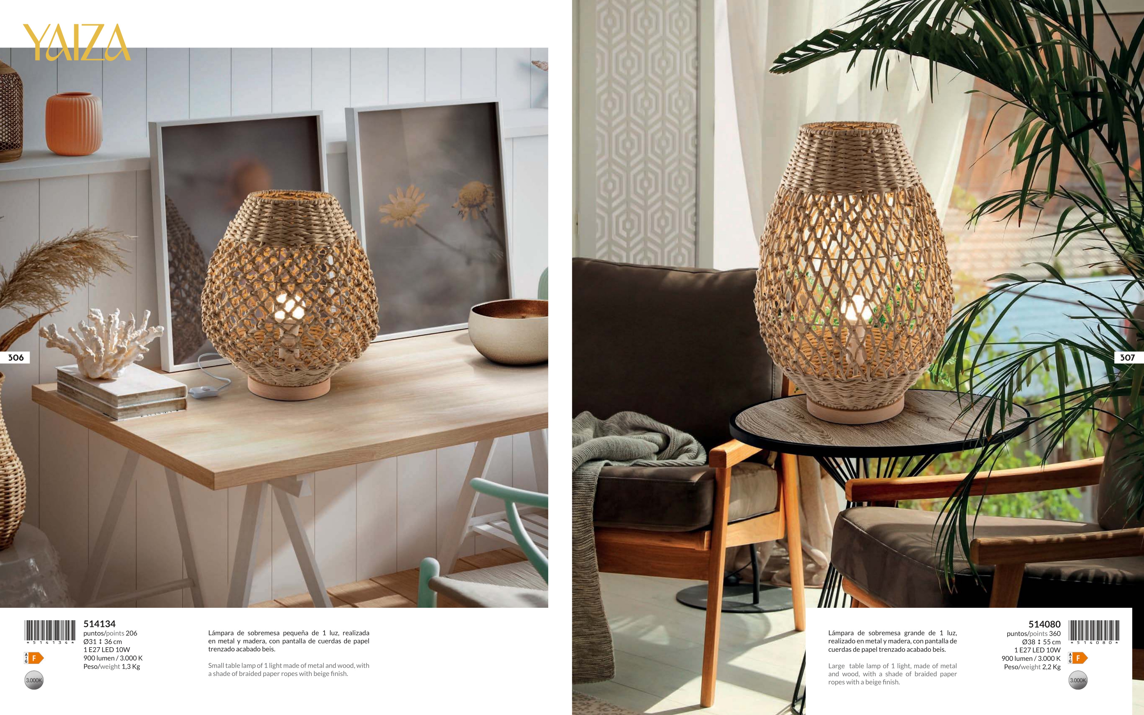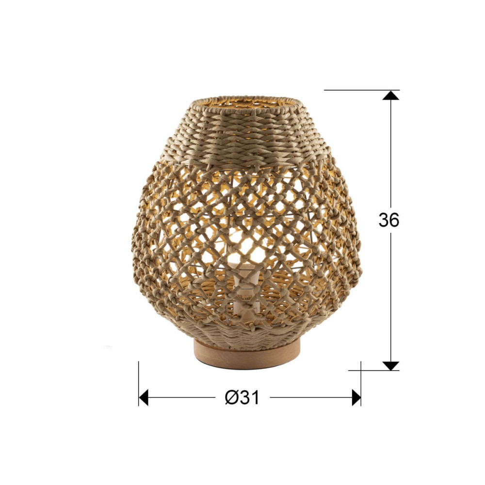 Осветителното тяло 514134 YAIZA - BRAIDED PAPER TABLE LAMP H35 ще осигури комфорт и естетика във всяко помещение, в което се постави. Цялостната визия и дизайн на лампата и вложените в изработката й материали, като метал, дърво, плетено хартиено въже в бежов цвят, ще допринесат за един неповторим стил. Благодарение на дългогодишния опит, качествените материали и строгия контрол на качеството на изработка на производителя Schuller (Испания), 514134 YAIZA - BRAIDED PAPER TABLE LAMP H35 е на високо европейско ниво.