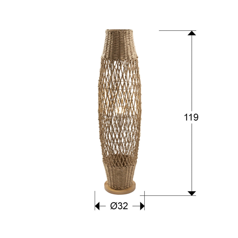Осветителното тяло 514264 YAIZA - BRAIDED PAPER FLOOR LAMP ще осигури комфорт и естетика във всяко помещение, в което се постави. Цялостната визия и дизайн на лампата и вложените в изработката й материали, като метал, дърво, плетено хартиено въже в бежов цвят, ще допринесат за един неповторим стил. Благодарение на дългогодишния опит, качествените материали и строгия контрол на качеството на изработка на производителя Schuller (Испания), 514264 YAIZA - BRAIDED PAPER FLOOR LAMP е на високо европейско ниво.