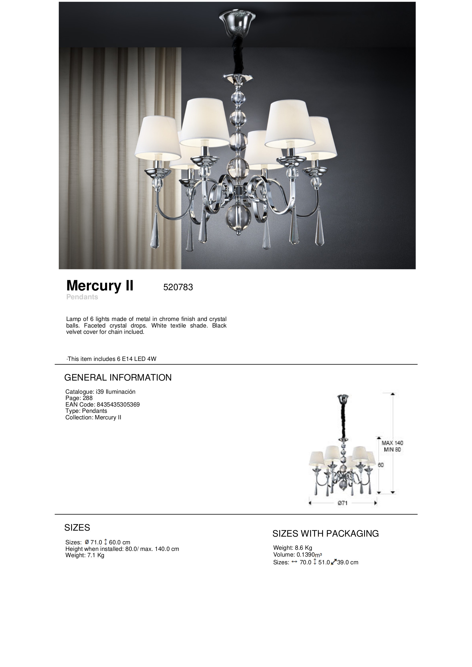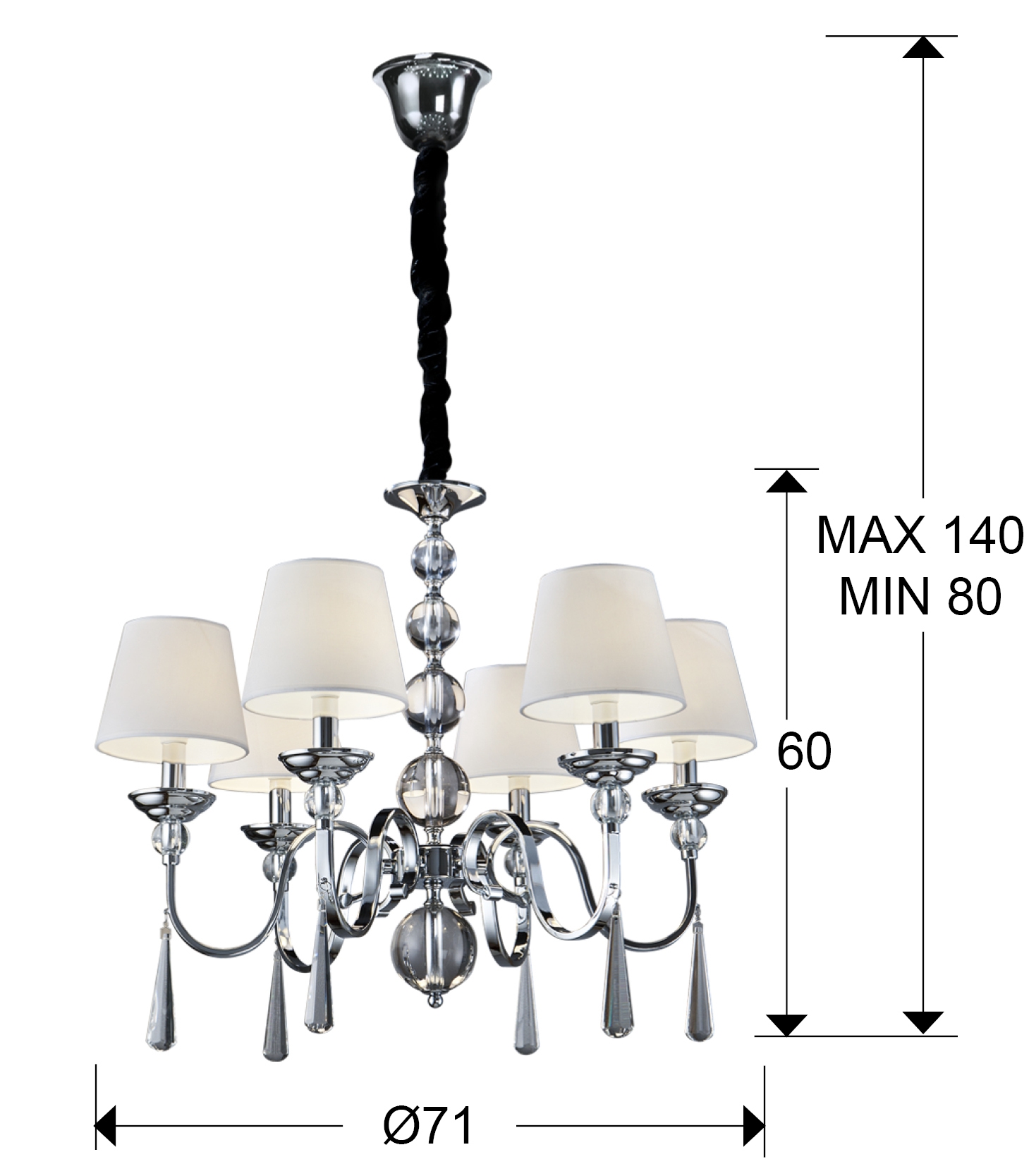 Лед полилей 520783 ще осигури комфорт и естетика във всяко помещение, в което се постави. Цялостната визия и дизайн на led лампата и вложените в изработката й материали, като метал с хромирано покритие и кристални топки, фасетирани кристални капки, бял текстилен абажур, черно кадифено покритие за веригата, ще допринесат за един неповторим стил. Благодарение на дългогодишния опит в производството на лед осветление, качествените материали и строгия контрол на качеството на изработка на производителя Schuller (Испания), 520783 е на високо европейско ниво.