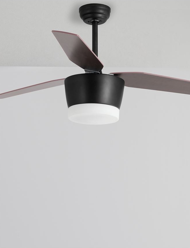 За стила и естетиката на интериора в изключително висока степен допринасят, както цялостната визия и дизайн на осветителното тяло, така и вложените в изработката висококачествени материали, като стомана в кафяв цвят, стъкло в бял мат, перки от дъб, PC мотор, дистанционно.