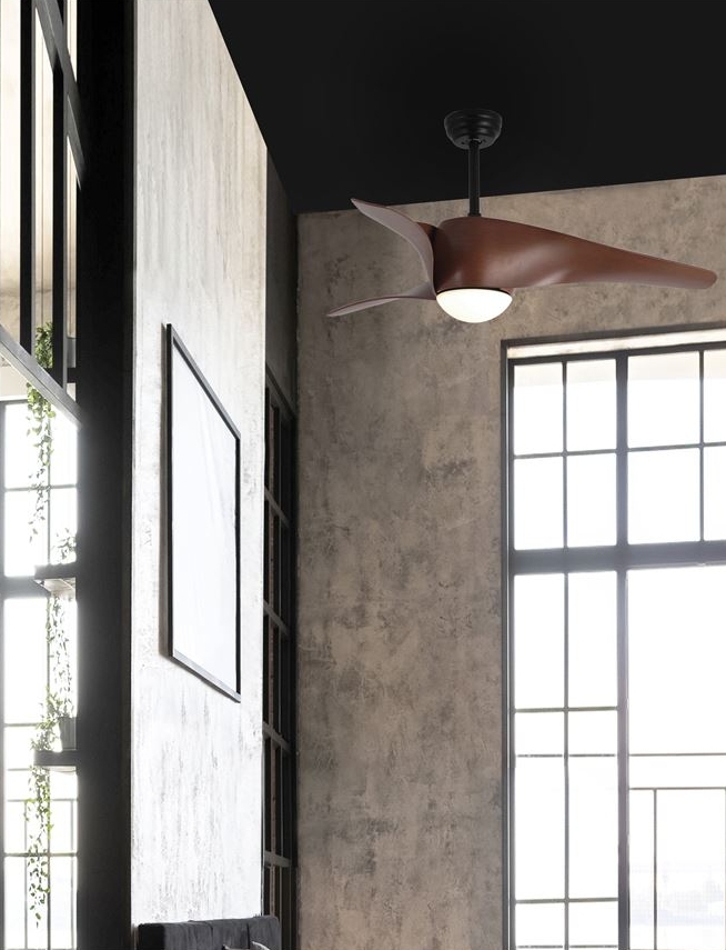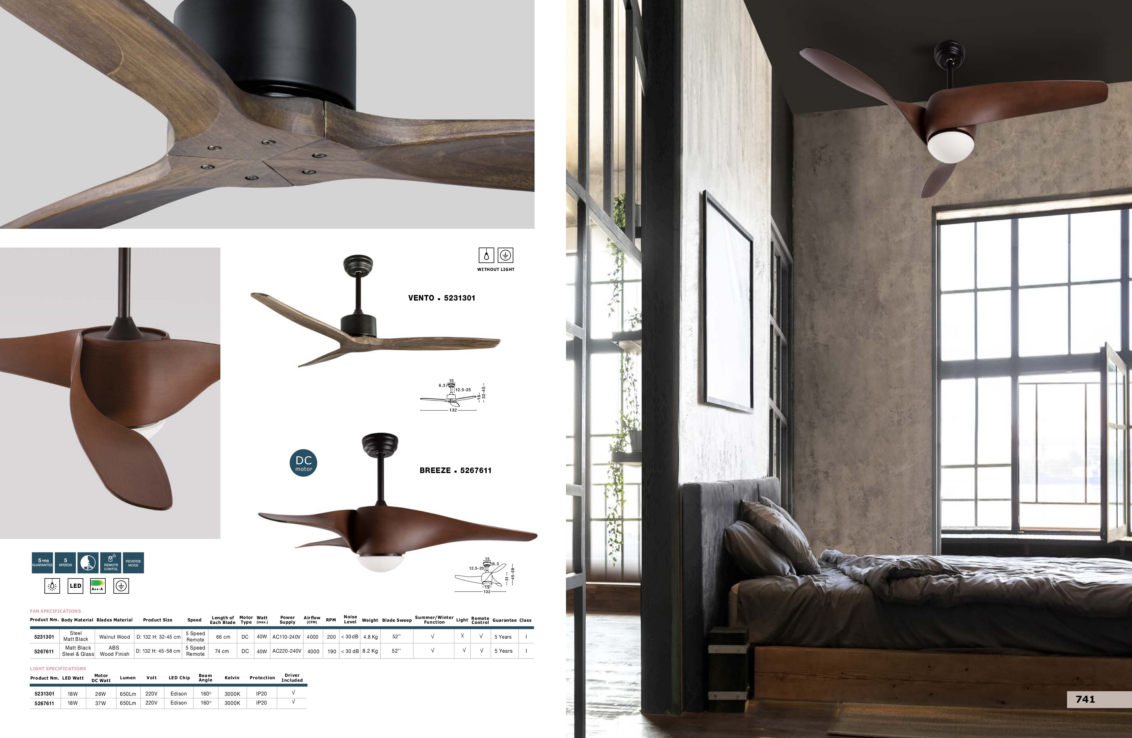 За стила и естетиката на интериора в изключително висока степен допринасят, както цялостната визия и дизайн на осветителното тяло, така и вложените в изработката висококачествени материали, като стомана в черен мат, стъкло, перки от полимер в цвят дърво, DC мотор, дистанционно.