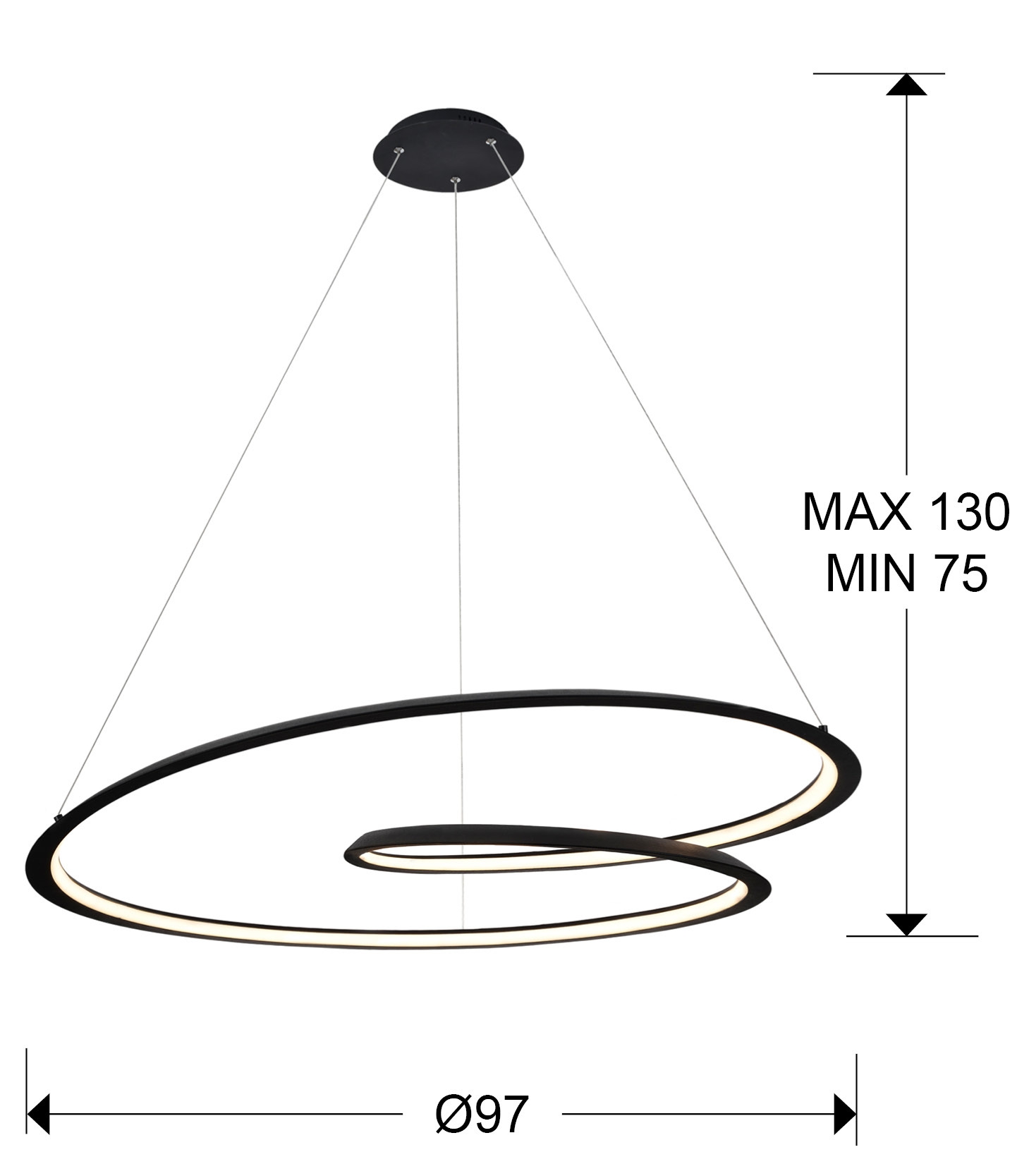 Лед полилей 527644 Looping d 97 3000k ще осигури комфорт и естетика във всяко помещение, в което се постави. Цялостната визия и дизайн на led лампата и вложените в изработката й материали, като метал и алуминий с матово черно покритие, дифузьор от опалово бял силикон, ще допринесат за един неповторим стил. Благодарение на дългогодишния опит в производството на лед осветление, качествените материали и строгия контрол на качеството на изработка на производителя Schuller (Испания), 527644 Looping d 97 3000k е на високо европейско ниво.