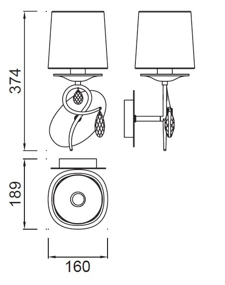метал в цвят хром, абажур от текстил в бял цвят, кристални висулки