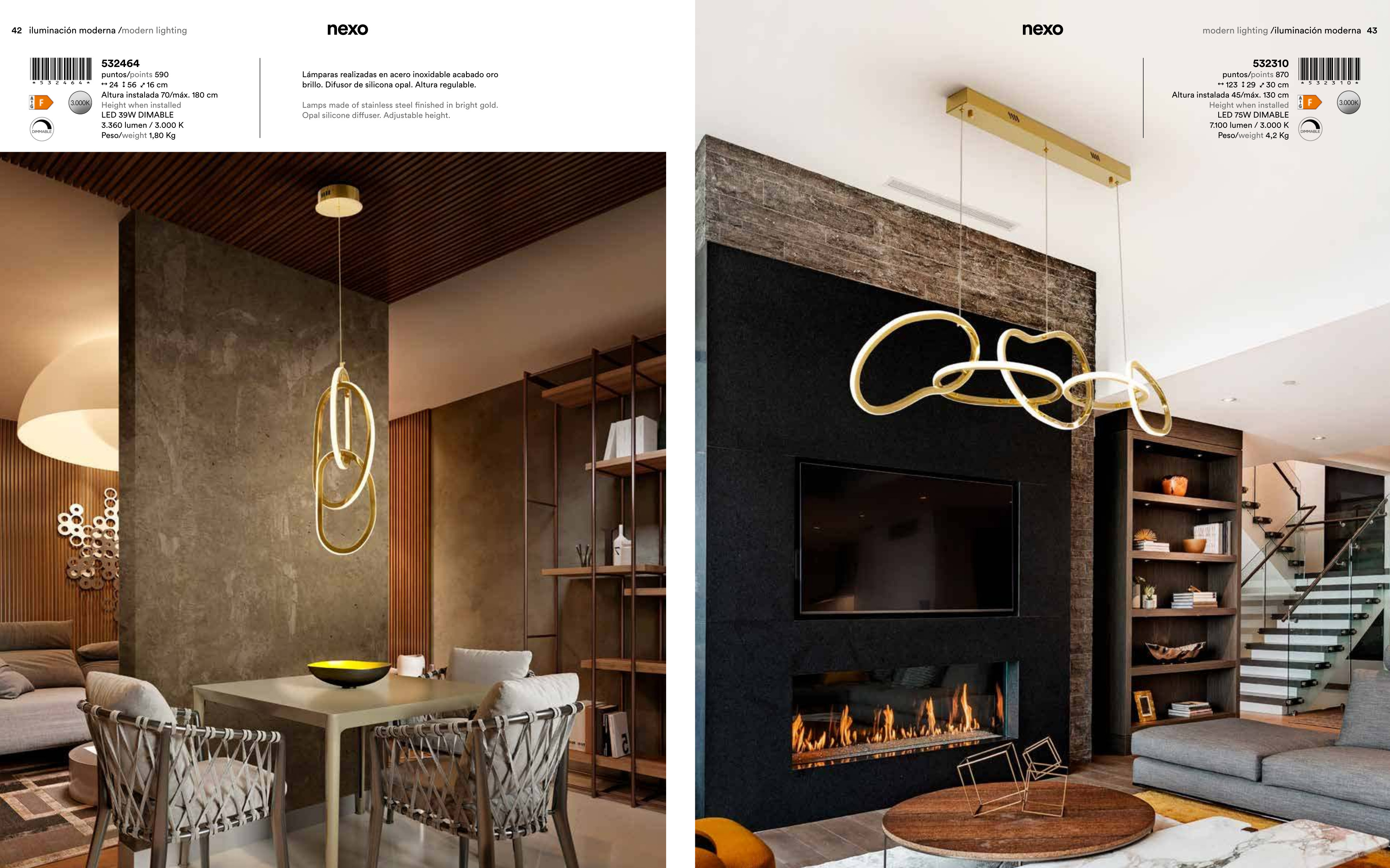 Осветителното тяло 532464 NEXO - LAMP 3L GOLD представлява пендел в съвременен стил. 532464 NEXO - LAMP 3L GOLD е от категорията осветителни тела и е подходящо за осветяване на различни помещения и пространства като: всекидневна / хол, спалня, кухня, трапезария, коридор, антре, офис.