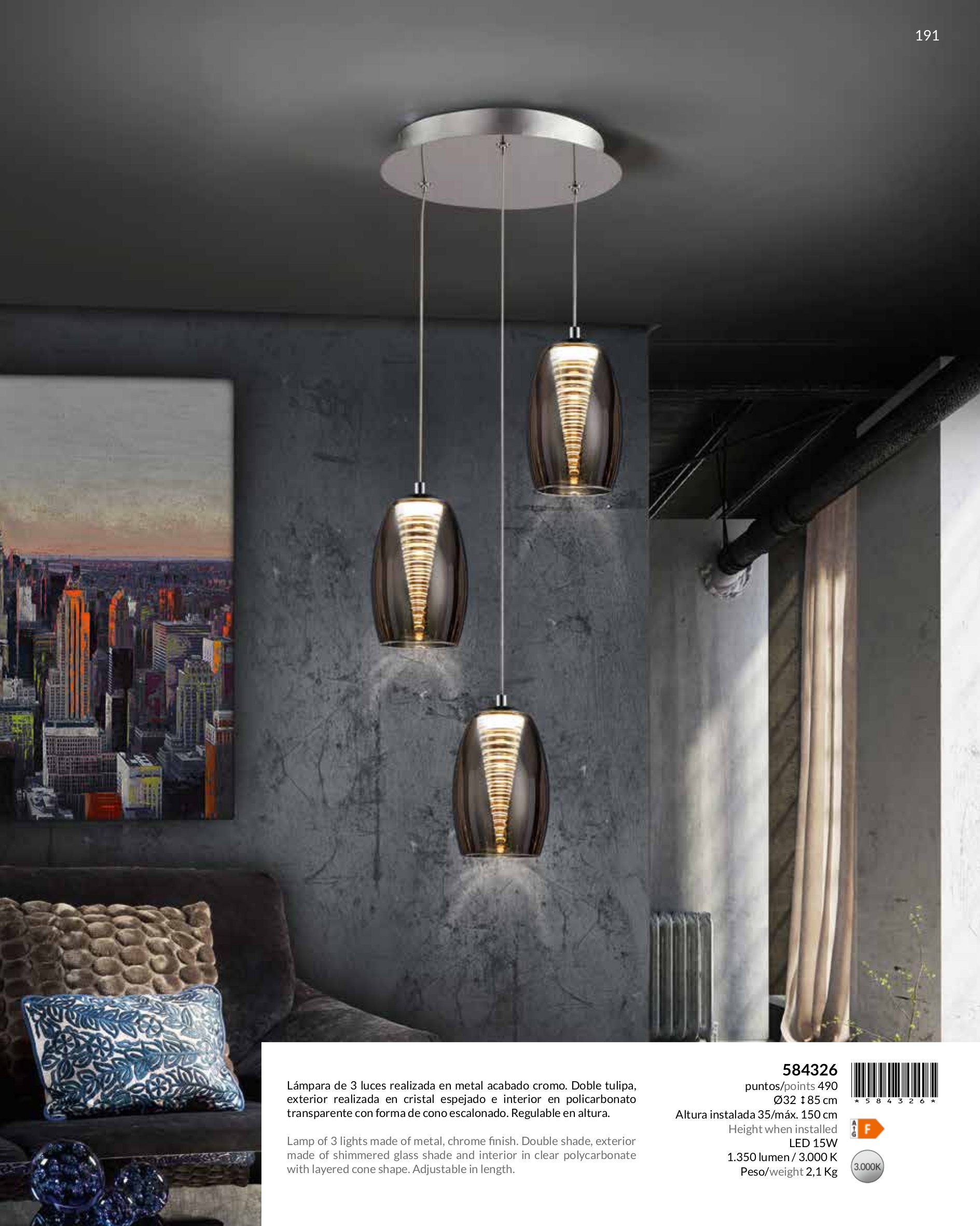 Лед полилей 584326 NEBULA LAMP 3L. LED, CHROME ще осигури комфорт и естетика във всяко помещение, в което се постави. Цялостната визия и дизайн на led лампата и вложените в изработката й материали, като хромиран метал, двоен абажур, външна част от прозрачно блестящо стъкло, вътрешна част от прозрачен поликарбонат с наслоен конус, ще допринесат за един неповторим стил. Благодарение на дългогодишния опит в производството на лед осветление, качествените материали и строгия контрол на качеството на изработка на производителя Schuller (Испания), 584326 NEBULA LAMP 3L. LED, CHROME е на високо европейско ниво.