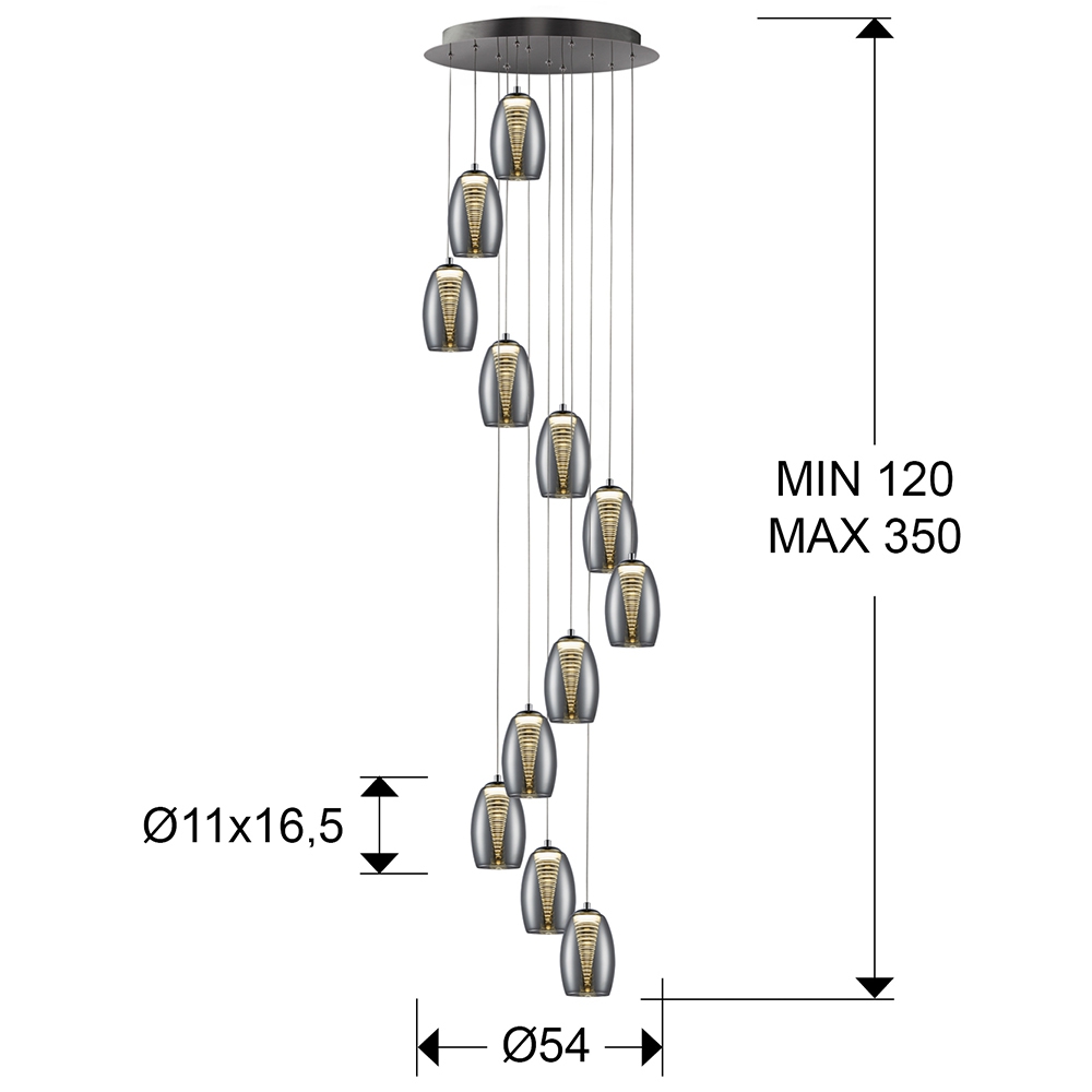 Ел. мощност 12 х 5 W Размери Ф54см x Ф11см x 120-350см Производител Schuller, Испания