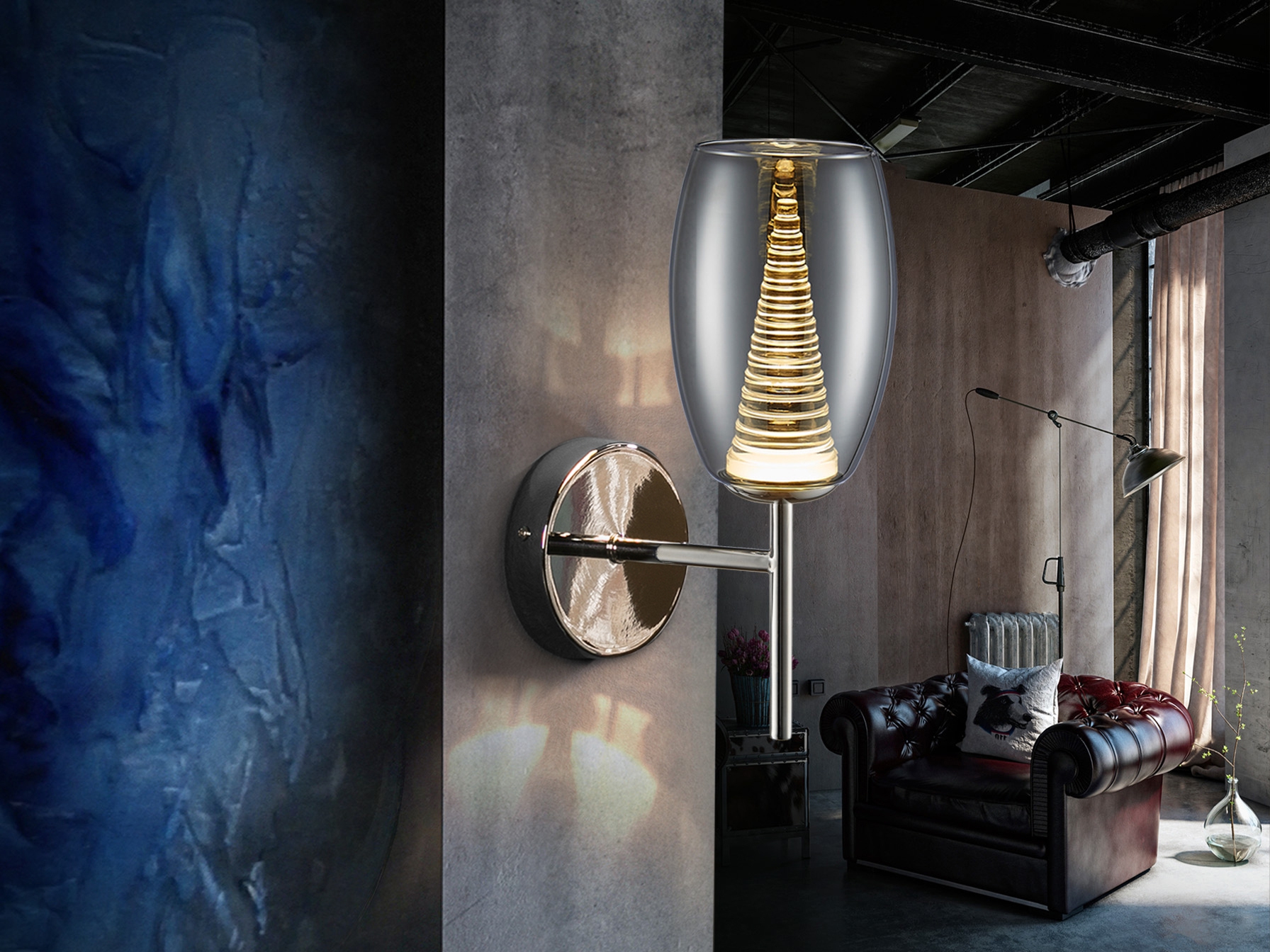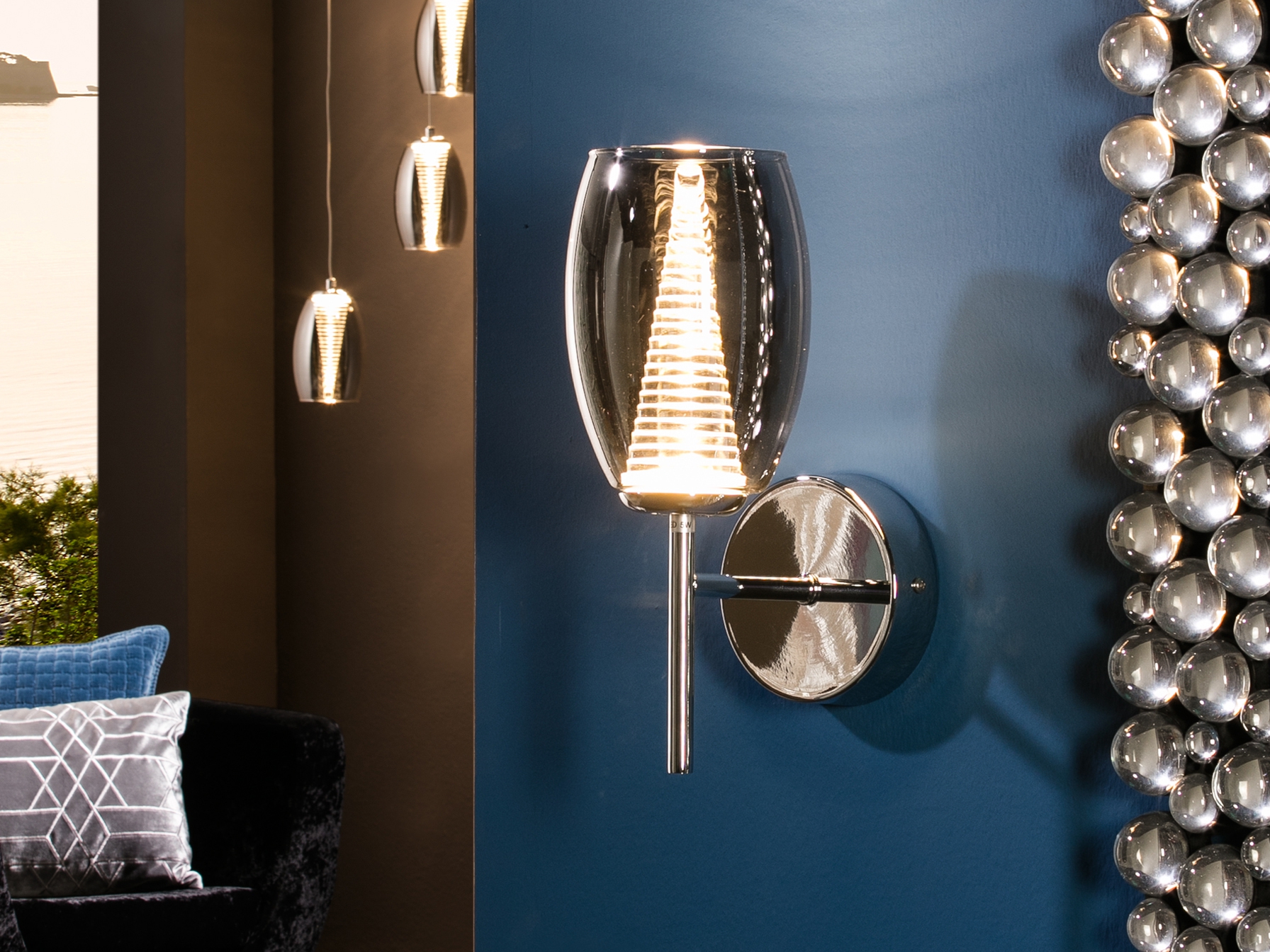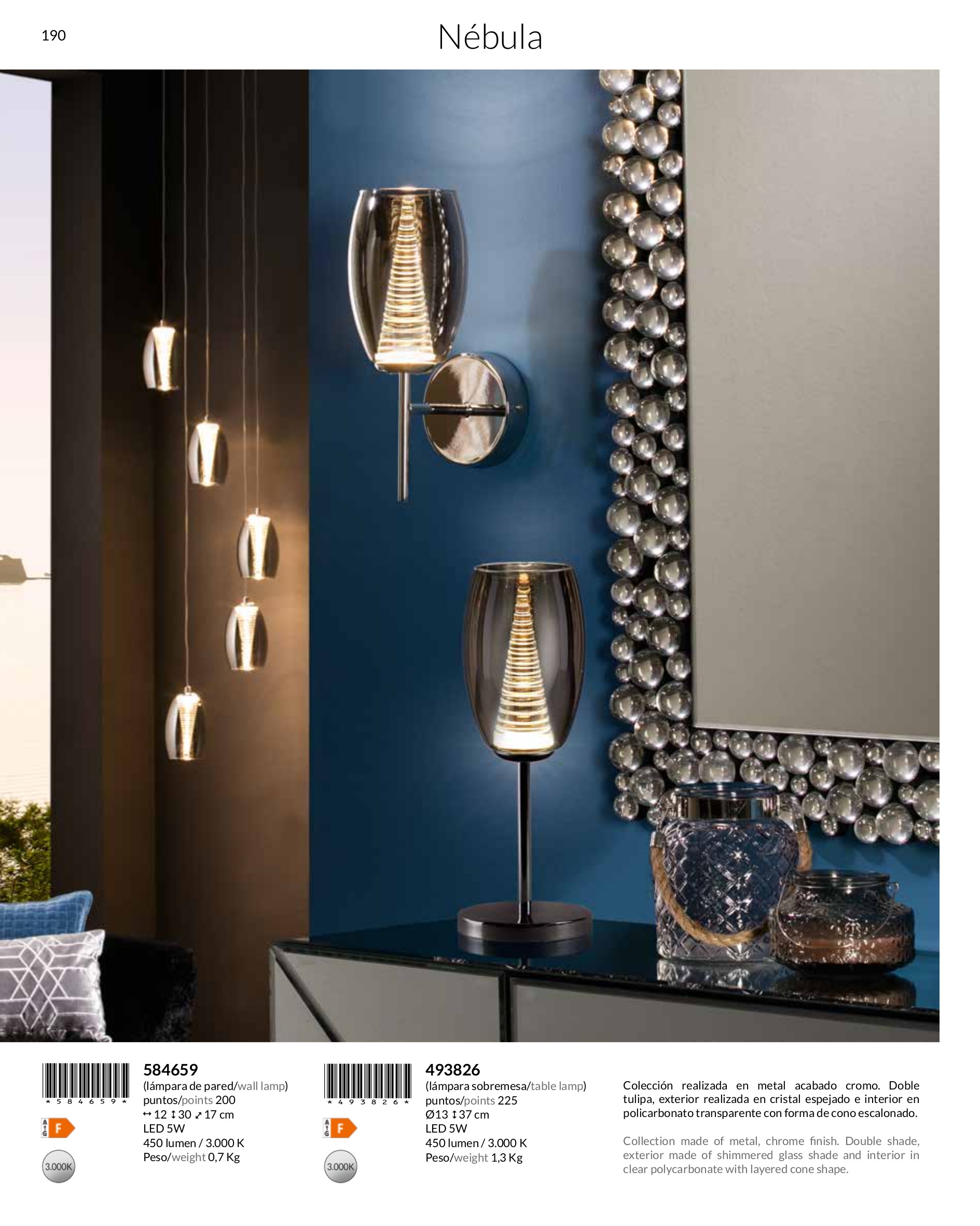 Осветителното тяло 584659 NEBULA WALL LAMP 1L. LED, CHROME ще осигури комфорт и естетика във всяко помещение, в което се постави. Цялостната визия и дизайн на лампата и вложените в изработката й материали, като хромиран метал, двоен абажур, външна част от прозрачно блестящо стъкло, вътрешна част от прозрачен поликарбонат с наслоен конус, ще допринесат за един неповторим стил. Благодарение на дългогодишния опит, качествените материали и строгия контрол на качеството на изработка на производителя Schuller (Испания), 584659 NEBULA WALL LAMP 1L. LED, CHROME е на високо европейско ниво.