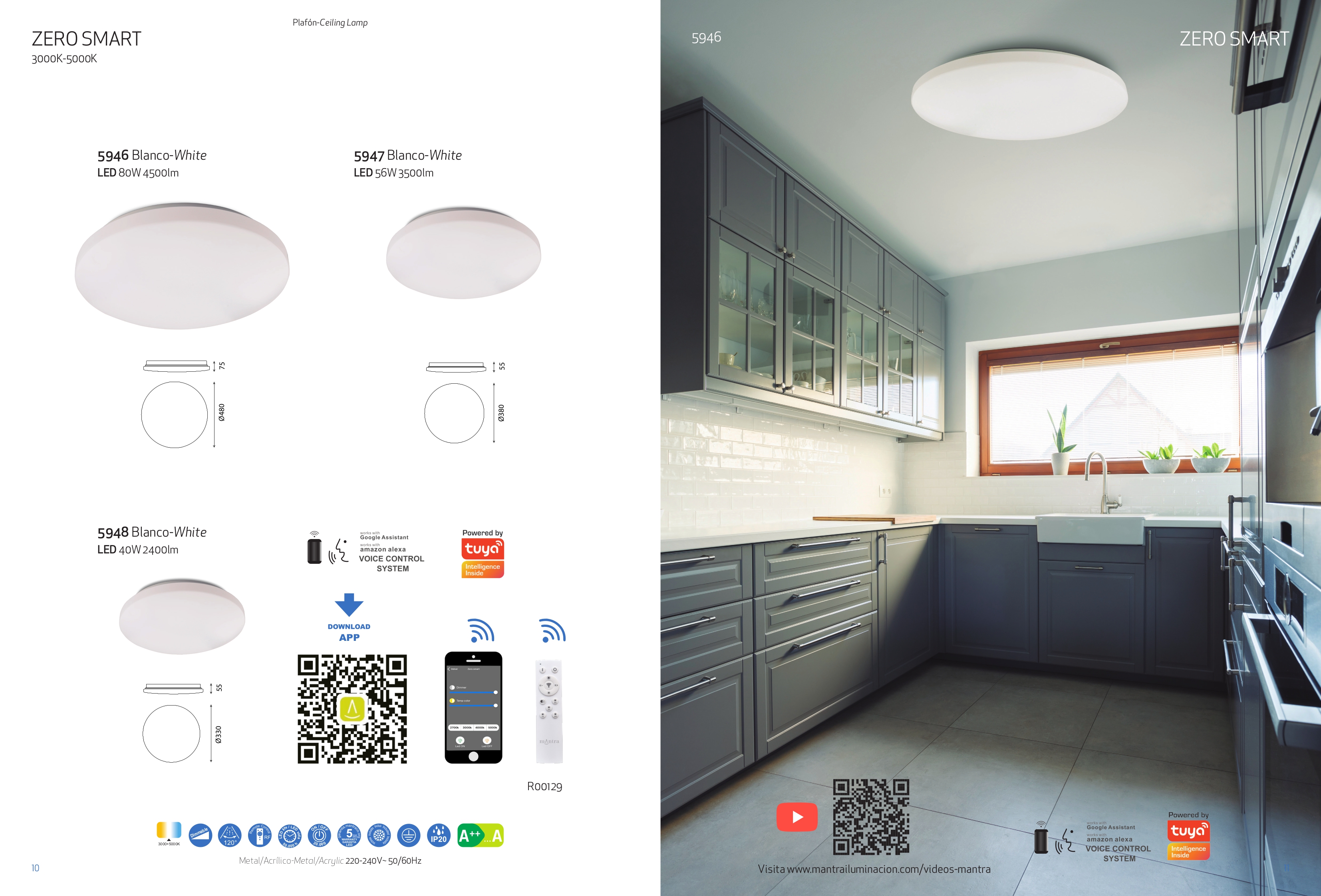 метал в бял цвят, дифузьор в млечно бяло, гласов контрол + дистанционно