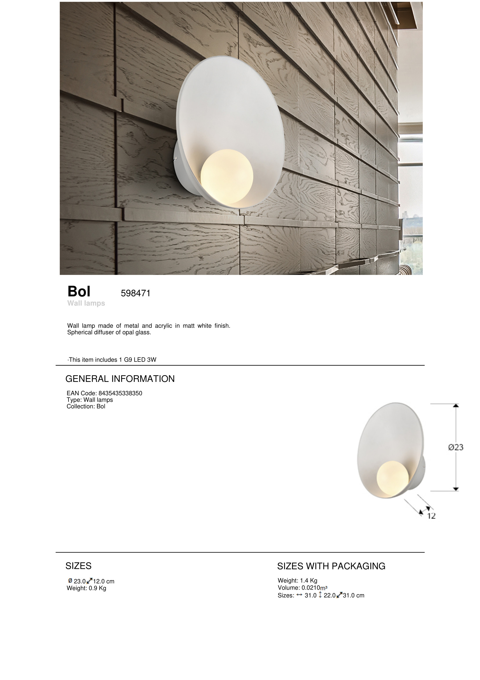 Магазини ОРИОН Ви представят осветителното тяло 598471 BOL - WHITE WALL LAMP G9, което представлява аплик, изработено в съвременен стил.