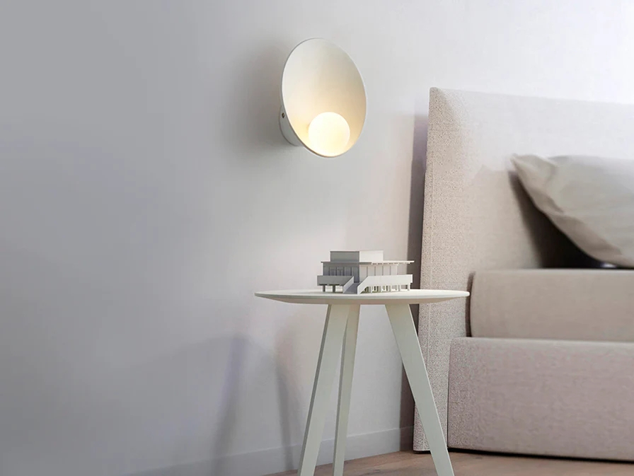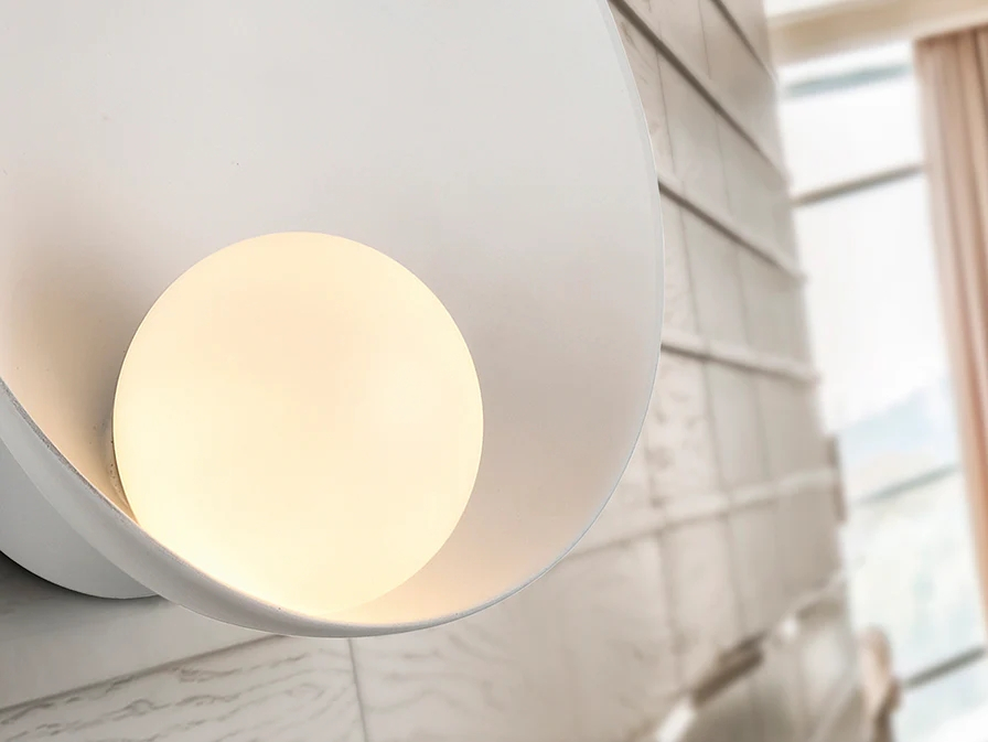 За стила и естетиката на обстановката допринасят, както цялостната визия и дизайн на осветителното тяло, така и вложените в изработката качествени материали, като: метал и акрил в матово бяло покритие, сферичен разсейвател от опалово стъкло.