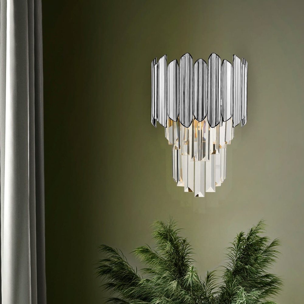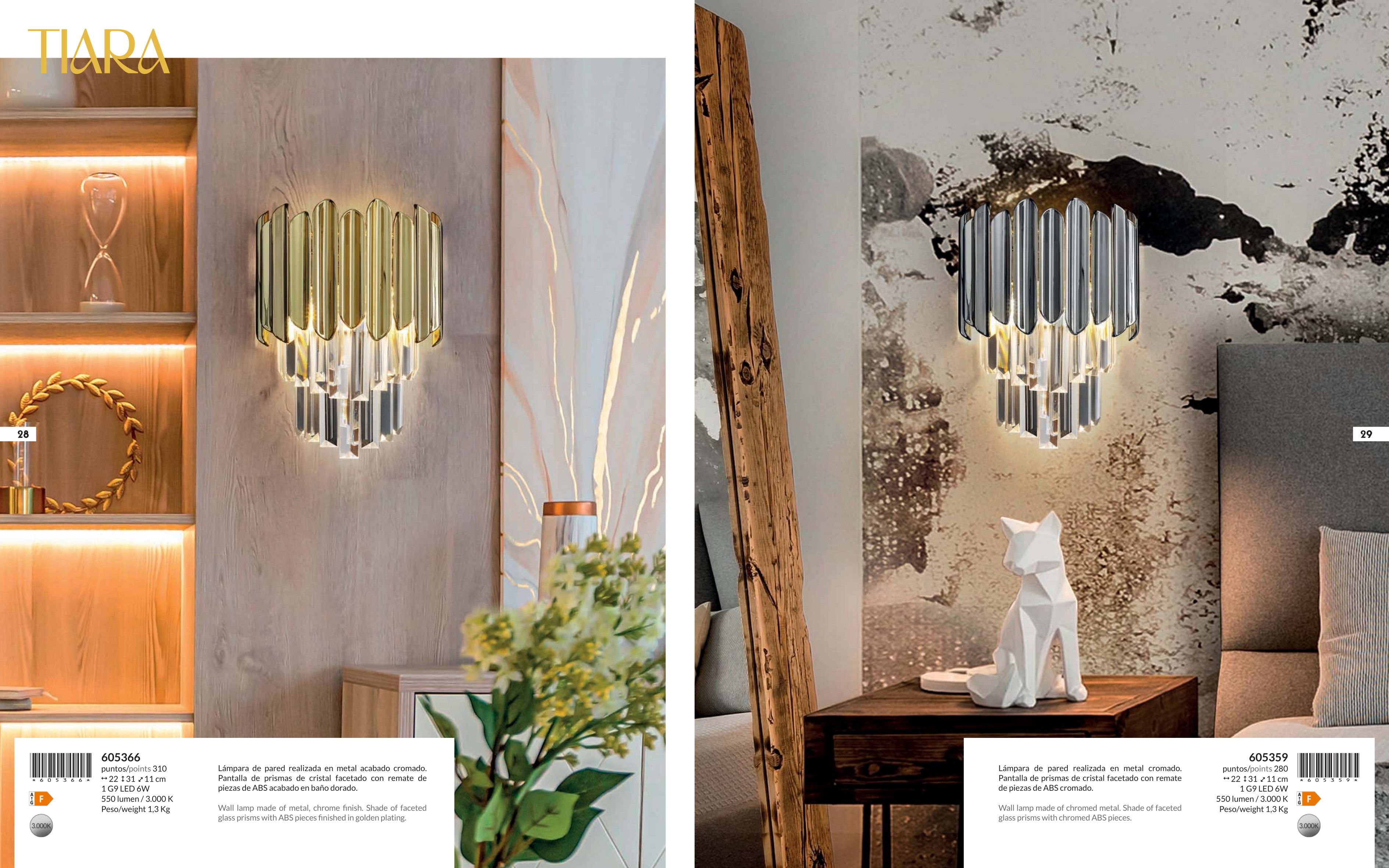 Лед аплик 605359 TIARA- WALL LAMP 1L CHROME ще осигури комфорт и естетика във всяко помещение, в което се постави. Цялостната визия и дизайн на led лампата и вложените в изработката й материали, като хромиран метал, фасетирани стъклени призми и хромирани призми от полимер (ABS), ще допринесат за един неповторим стил. Благодарение на дългогодишния опит в производството на лед осветление, качествените материали и строгия контрол на качеството на изработка на производителя Schuller (Испания), 605359 TIARA- WALL LAMP 1L CHROME е на високо европейско ниво.