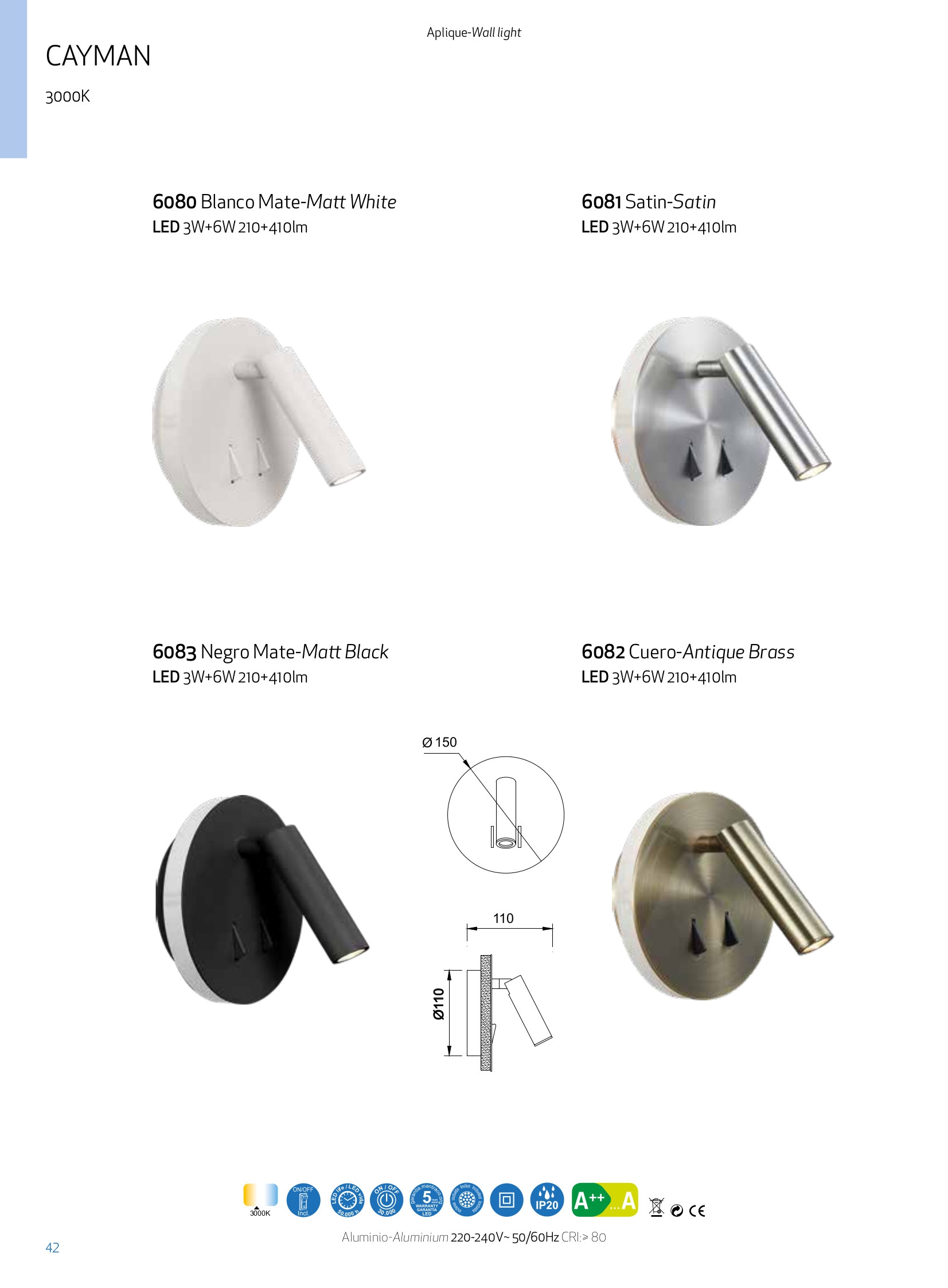 Осветителното тяло 6083 Matt Black 3+6W 3000K 620lm CAYMAN ще осигури комфорт и естетика във всяко помещение, в което се постави. Цялостната визия и дизайн на лампата и вложените в изработката й материали, като алуминий в матирано черно, акрил, ще допринесат за един неповторим стил. Благодарение на дългогодишния опит, качествените материали и строгия контрол на качеството на изработка на производителя Mantra (Испания), 6083 Matt Black 3+6W 3000K 620lm CAYMAN е на високо европейско ниво.