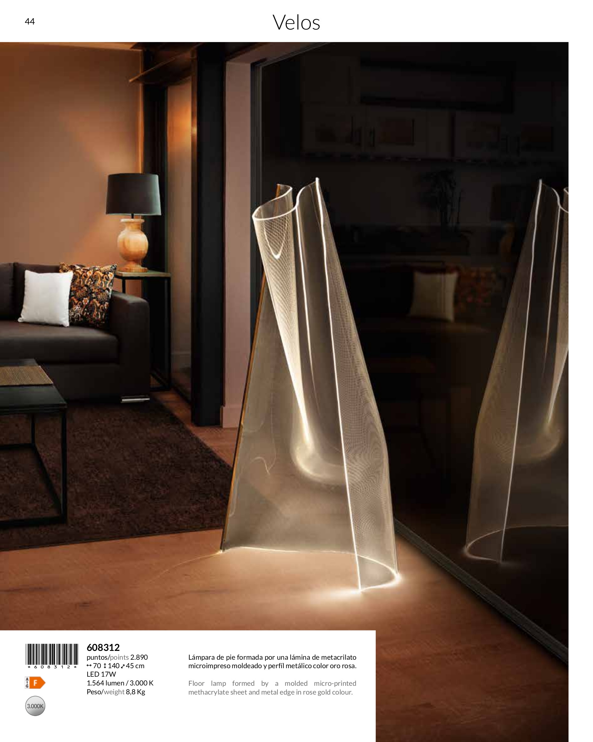 Осветителното тяло 608312 VELOS LED 17W 1564 lm представлява лампион / правостояща лампа в съвременен, дизайнерски стил. 608312 VELOS LED 17W 1564 lm е от категорията осветителни тела и е подходящо за осветяване на различни помещения и пространства като: всекидневна / хол, спалня, трапезария, офис.