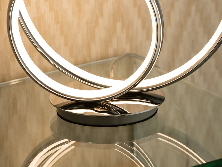 Осветителното тяло 614082 OMEGA CHROME TABLE LAMP представлява лед настолна лампа в съвременен стил. 614082 OMEGA CHROME TABLE LAMP е от категорията и е подходящо за осветяване на различни помещения и пространства като: всекидневна / хол, спалня, трапезария, офис.