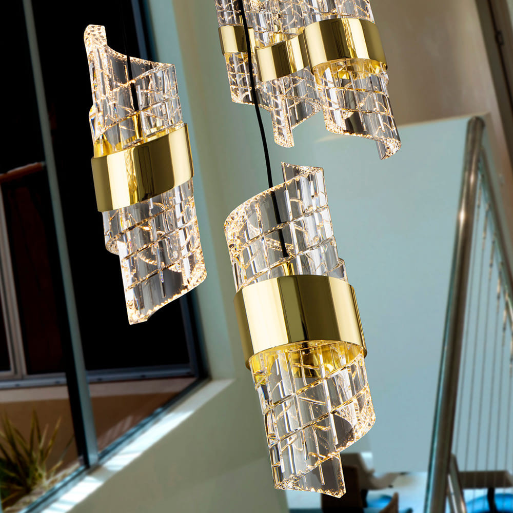 метал в матово черен цвят, златисти метални орнаменти, спираловиден лят и резбован акрил, включва комплект за димиране