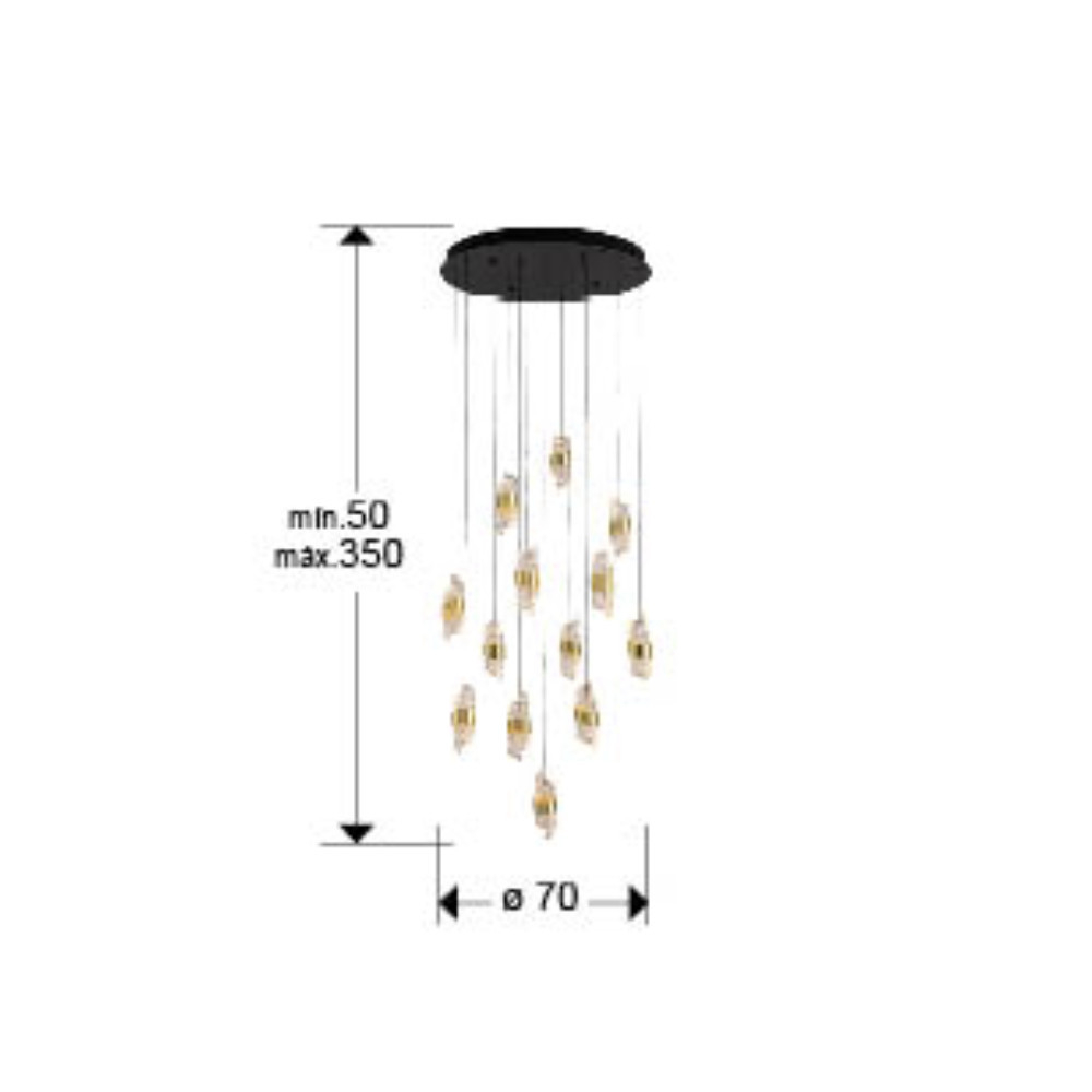 Осветителното тяло 631730 ILIADA - LAMP 13L BLACK-GOLD D70 представлява полилей в съвременен стил. 631730 ILIADA - LAMP 13L BLACK-GOLD D70 е от категорията осветителни тела и е подходящо за осветяване на различни помещения и пространства като: всекидневна / хол, спалня, кухня, трапезария, офис.