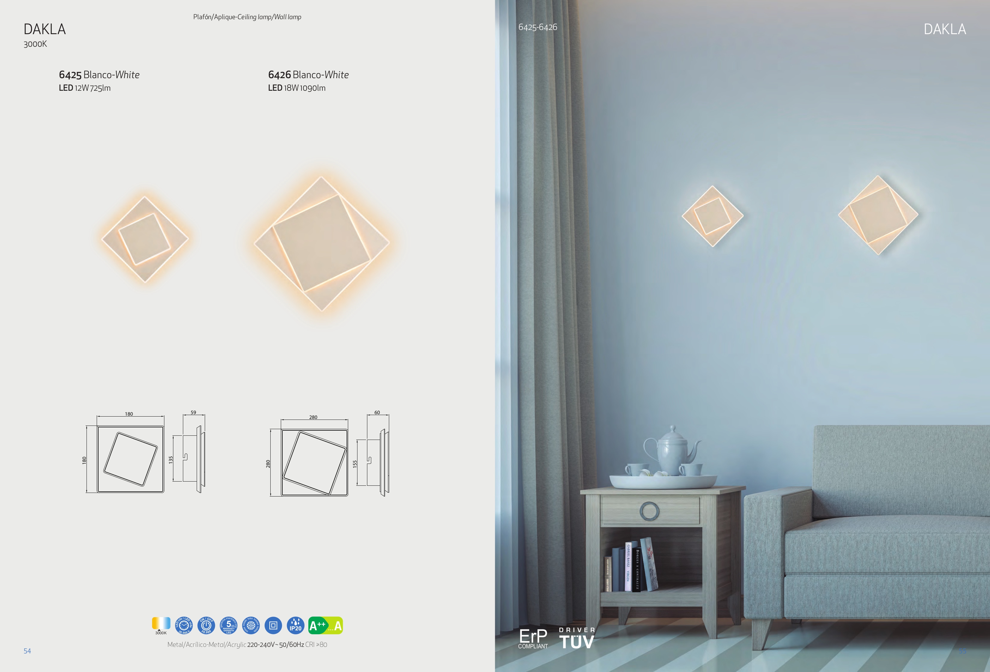 Лед плафон, аплик 6425 White 12W 3000K 725lm DAKLA ще осигури комфорт и естетика във всяко помещение, в което се постави. Цялостната визия и дизайн на led лампата и вложените в изработката й материали, като метал в бяло, полимер, ще допринесат за един неповторим стил. Благодарение на дългогодишния опит в производството на лед осветление, качествените материали и строгия контрол на качеството на изработка на производителя Mantra (Испания), 6425 White 12W 3000K 725lm DAKLA е на високо европейско ниво.