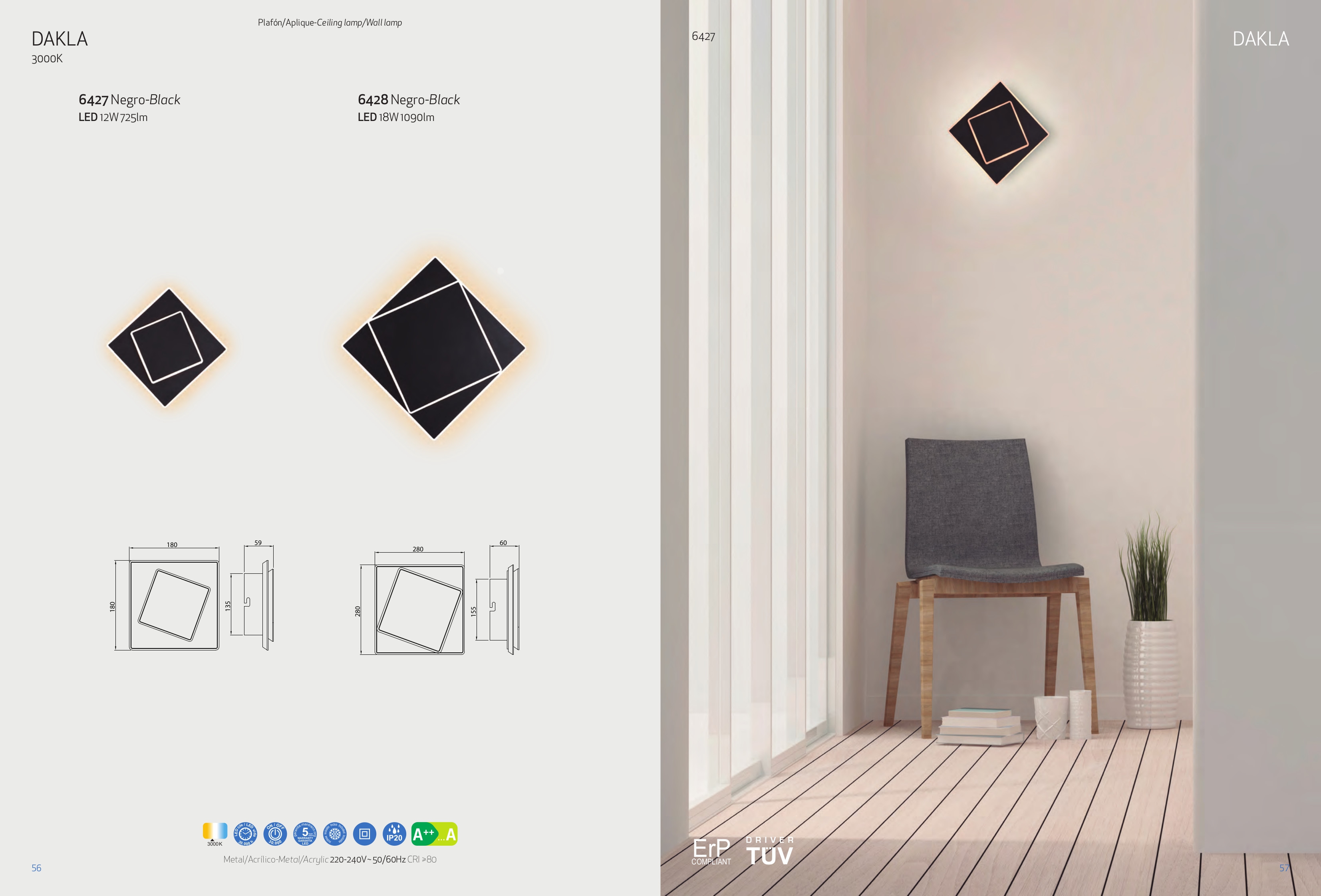Осветителното тяло 6427 Black 12W 3000K 725lm DAKLA представлява плафон, аплик в съвременен, дизайнерски стил. 6427 Black 12W 3000K 725lm DAKLA е от категорията осветителни тела и е подходящо за осветяване на различни помещения и пространства като: всекидневна / хол, спалня, кухня, трапезария, коридор, антре, стълбище, офис.