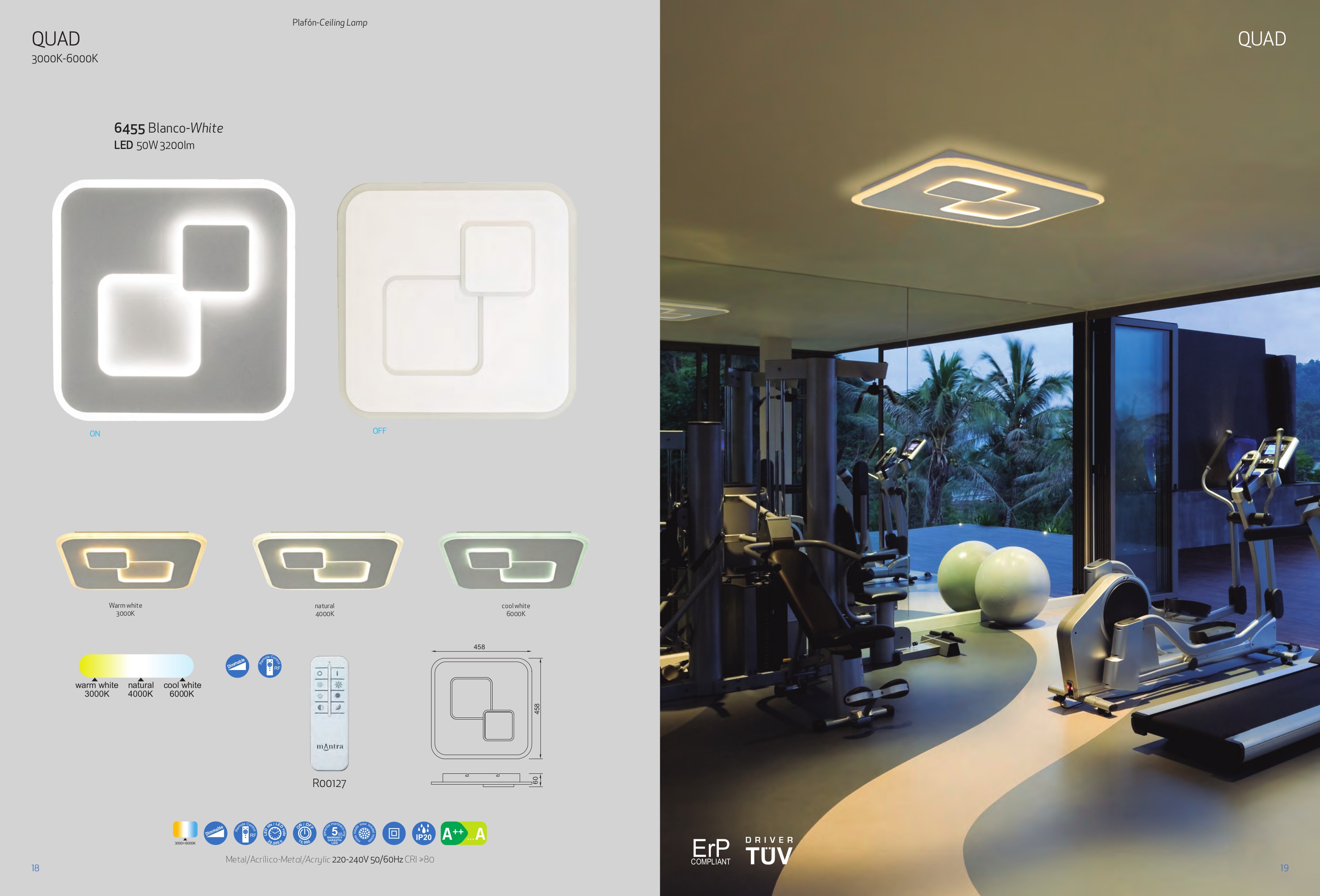 Лед плафон 6455 50W/3000-6000K SQUARE CEILING REM. CONT. WHIT ще осигури комфорт и естетика във всяко помещение, в което се постави. Цялостната визия и дизайн на led лампата и вложените в изработката й материали, като метал в бял цвят, полимер, ще допринесат за един неповторим стил. Благодарение на дългогодишния опит в производството на лед осветление, качествените материали и строгия контрол на качеството на изработка на производителя Mantra (Испания), 6455 50W/3000-6000K SQUARE CEILING REM. CONT. WHIT е на високо европейско ниво.