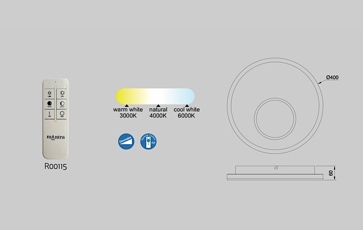 Лед плафон, аплик ^6456 40W/3000-6000K ROUND CEILING REM. CONT. WHIT ще осигури комфорт и естетика във всяко помещение, в което се постави. Цялостната визия и дизайн на led лампата и вложените в изработката й материали, като метал в бял цвят, полимер, ще допринесат за един неповторим стил. Благодарение на дългогодишния опит в производството на лед осветление, качествените материали и строгия контрол на качеството на изработка на производителя Mantra (Испания), ^6456 40W/3000-6000K ROUND CEILING REM. CONT. WHIT е на високо европейско ниво.