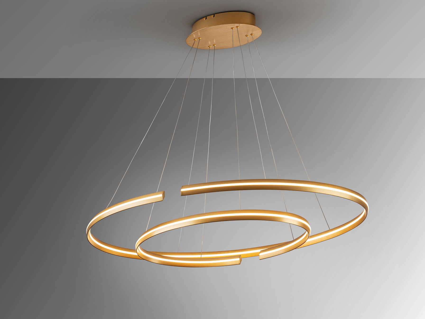 Осветителното тяло 652043B ELIPSE LARGE LAMP, GOLD представлява лед полилей в съвременен стил. 652043B ELIPSE LARGE LAMP, GOLD е от категорията и е подходящо за осветяване на различни помещения и пространства като: всекидневна / хол, спалня, кухня, трапезария, офис.