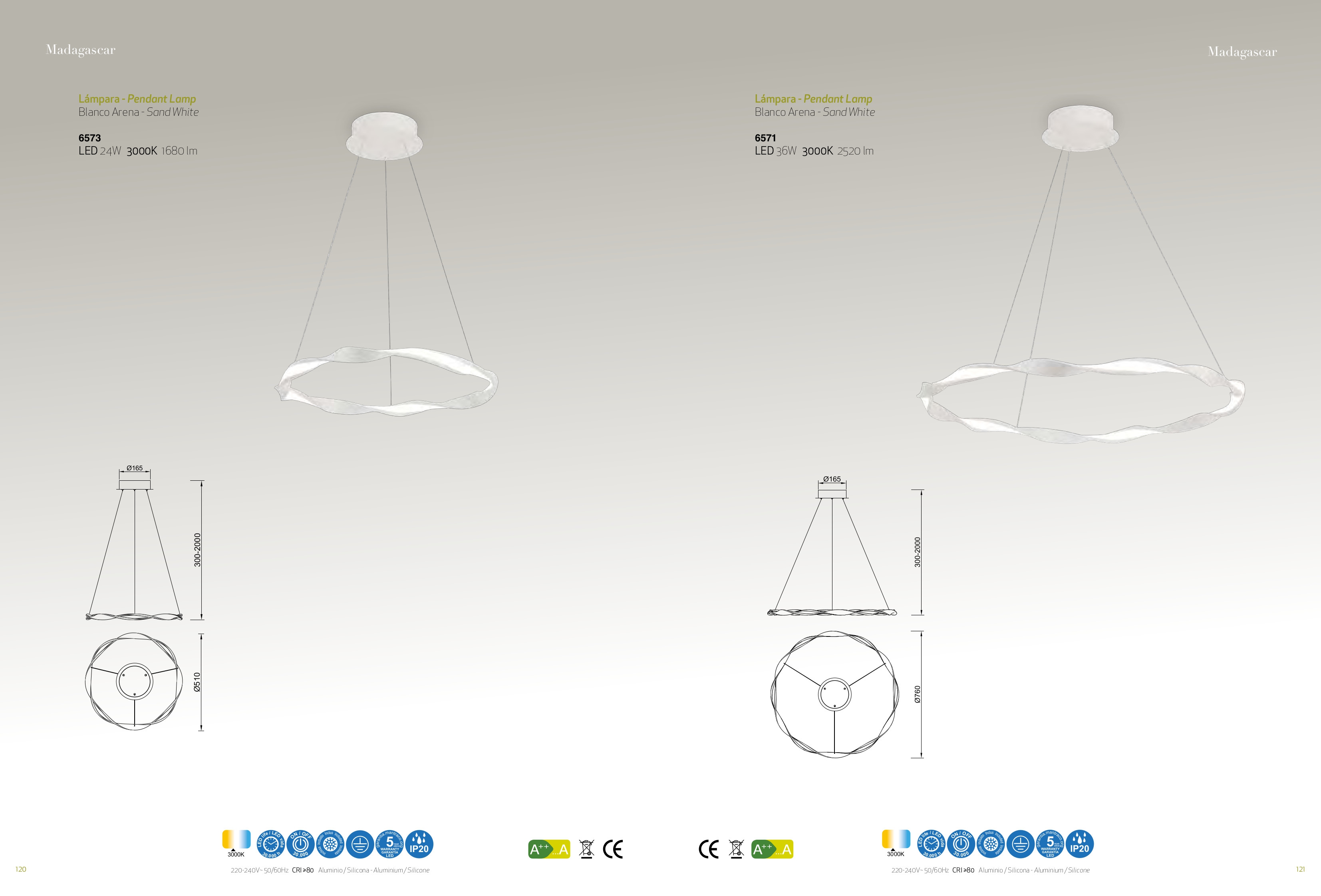 Осветителното тяло ^6571 PENDANT LED 36W/3000K SAND WHITE ще осигури комфорт и естетика във всяко помещение, в което се постави. Цялостната визия и дизайн на лампата и вложените в изработката й материали, като алуминий в пясъчно бял цвят, силикон в бяло, ще допринесат за един неповторим стил. Благодарение на дългогодишния опит, качествените материали и строгия контрол на качеството на изработка на производителя Mantra (Испания), ^6571 PENDANT LED 36W/3000K SAND WHITE е на високо европейско ниво.