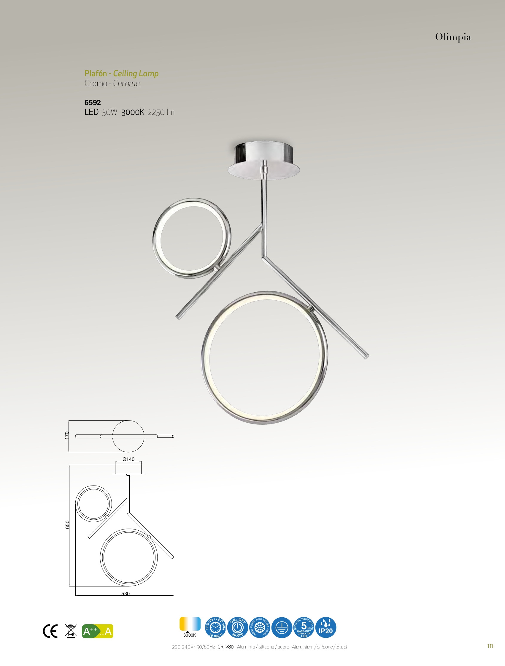 Осветителното тяло @6592 CEILING LED 30W/3000K CHROME ще осигури комфорт и естетика във всяко помещение, в което се постави. Цялостната визия и дизайн на лампата и вложените в изработката й материали, като алуминий и стомана с хромово покритие, силикон, ще допринесат за един неповторим стил. Благодарение на дългогодишния опит, качествените материали и строгия контрол на качеството на изработка на производителя Mantra (Испания), @6592 CEILING LED 30W/3000K CHROME е на високо европейско ниво.