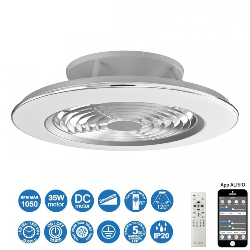 Осветителното тяло 6706 CEILING 70W/FAN 30W REMOTE CONTR/APP SILVER P ще осигури комфорт и естетика във всяко помещение, в което се постави. Цялостната визия и дизайн на лампата и вложените в изработката й материали, като метал в цвят сребро, метален тороид в цвят хром, полимер (ABS) в бяло, интегриран вентилатор с DC мотор 35W, контрол с приложение за смартфон или с дистанционно управление, ще допринесат за един неповторим стил. Благодарение на дългогодишния опит, качествените материали и строгия контрол на качеството на изработка на производителя Mantra (Испания), 6706 CEILING 70W/FAN 30W REMOTE CONTR/APP SILVER P е на високо европейско ниво.