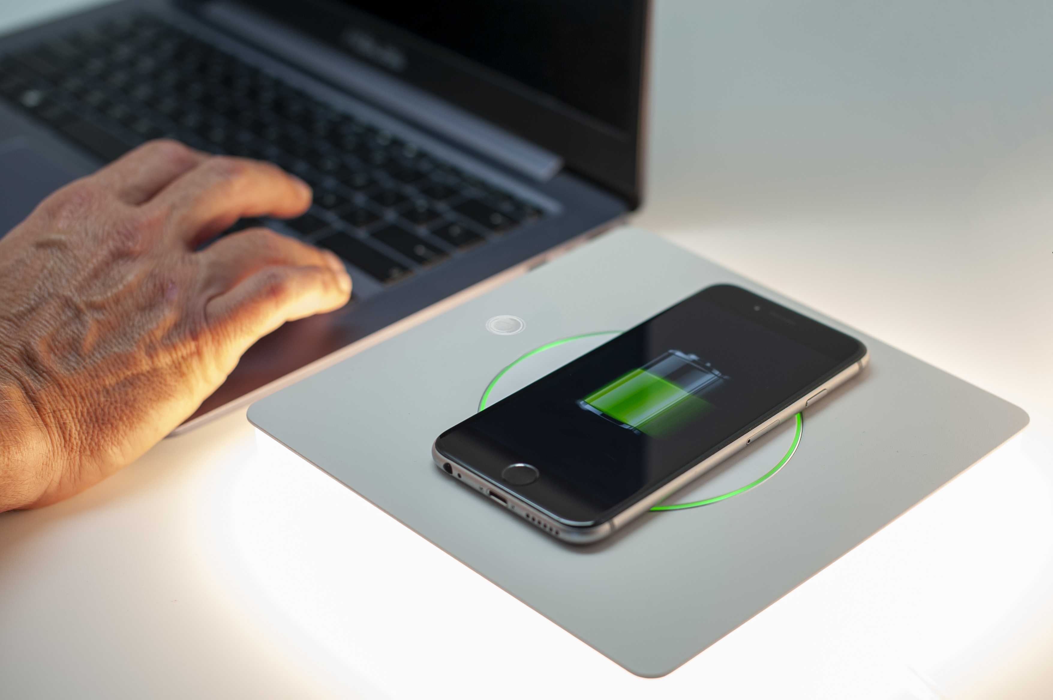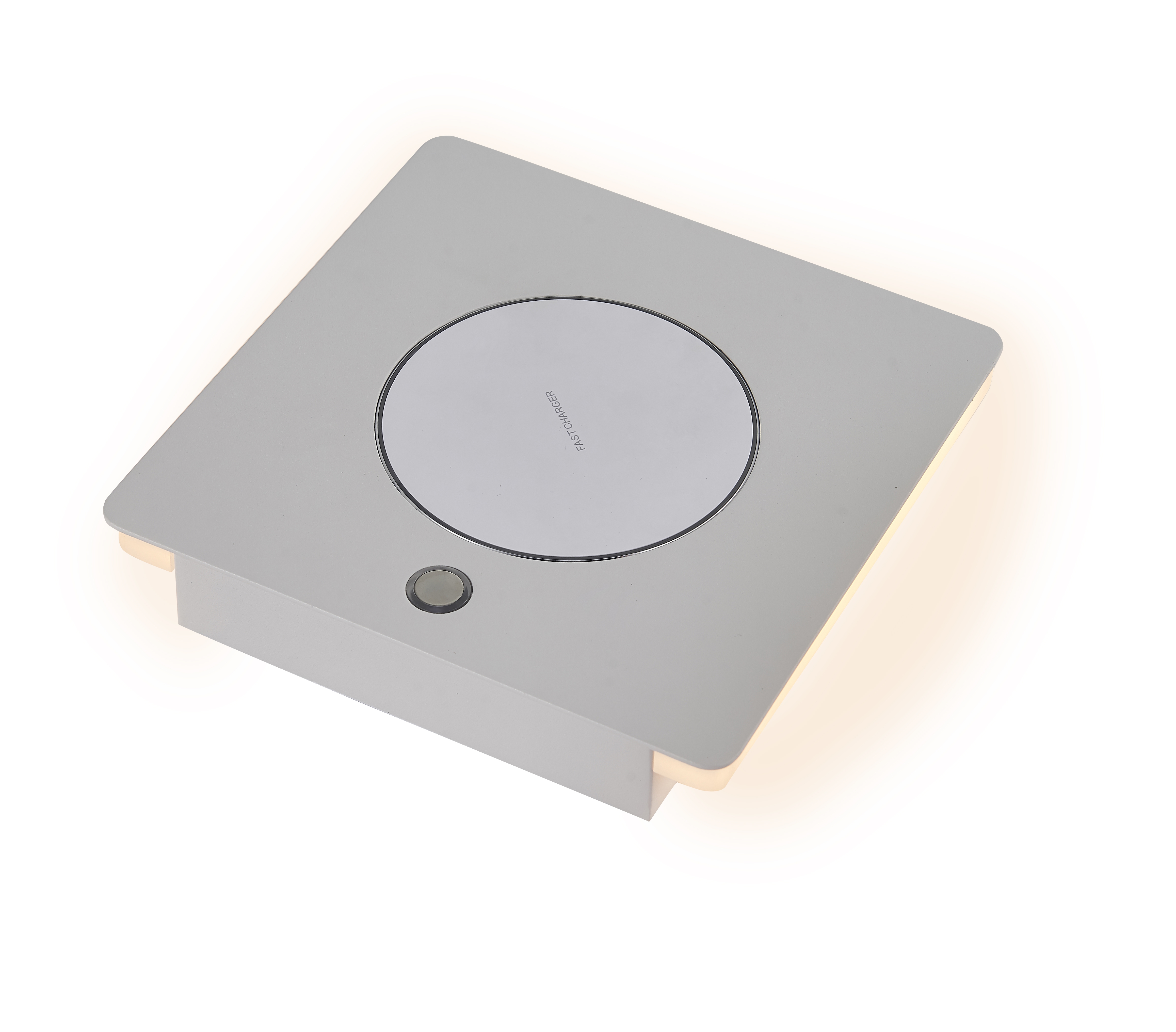 алуминий и метал в бял цвят, ключ ON/OFF, индуктивно зареждане на смартфон