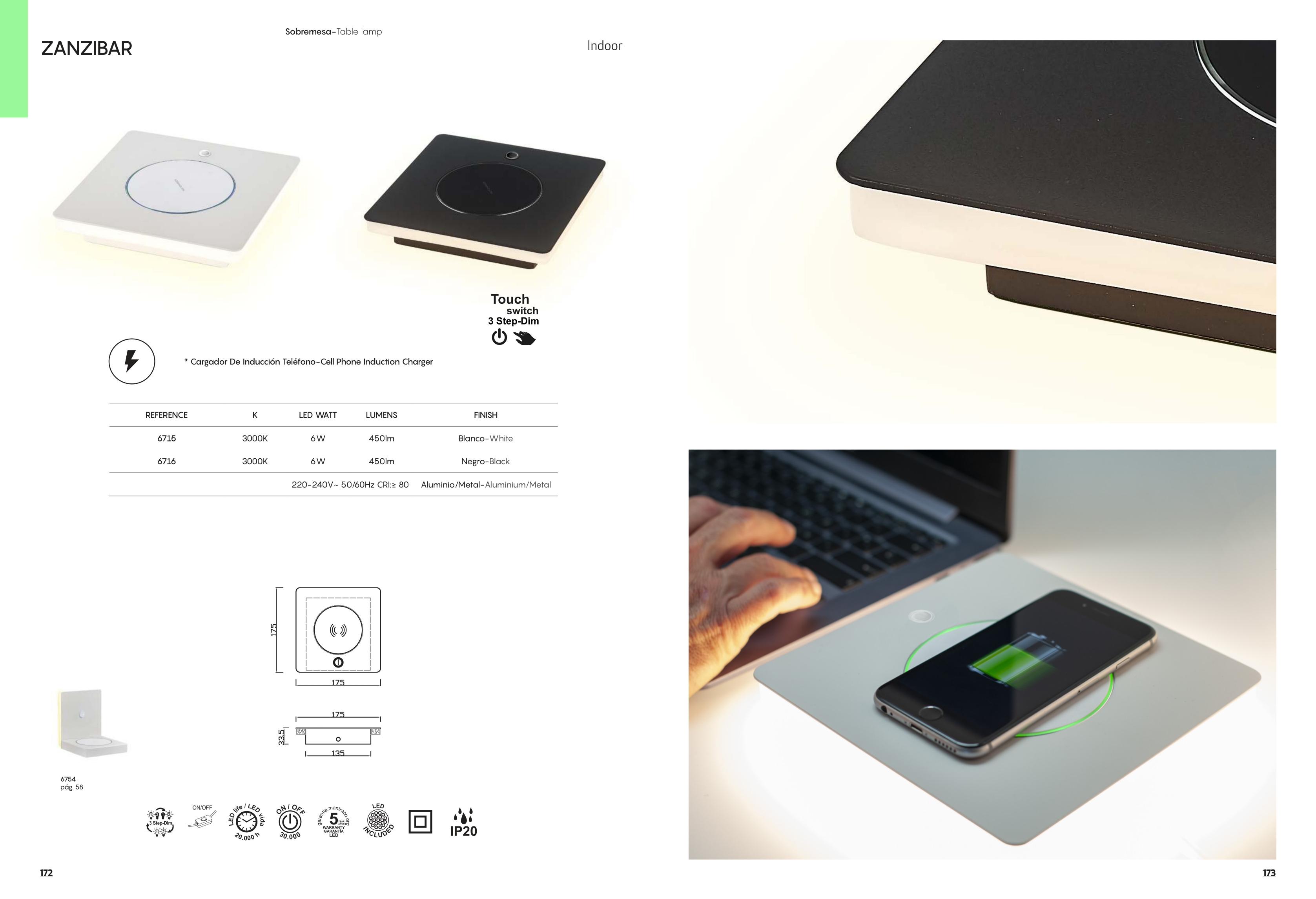 Осветителното тяло ^6716 BLACK TL 6W/3000K CELL PHONE INDUCTION CHARG ще осигури комфорт и естетика във всяко помещение, в което се постави. Цялостната визия и дизайн на лампата и вложените в изработката й материали, като алуминий и метал в черен цвят, ключ ON/OFF, индуктивно зареждане на смартфон , ще допринесат за един неповторим стил. Благодарение на дългогодишния опит, качествените материали и строгия контрол на качеството на изработка на производителя Mantra (Испания), ^6716 BLACK TL 6W/3000K CELL PHONE INDUCTION CHARG е на високо европейско ниво.