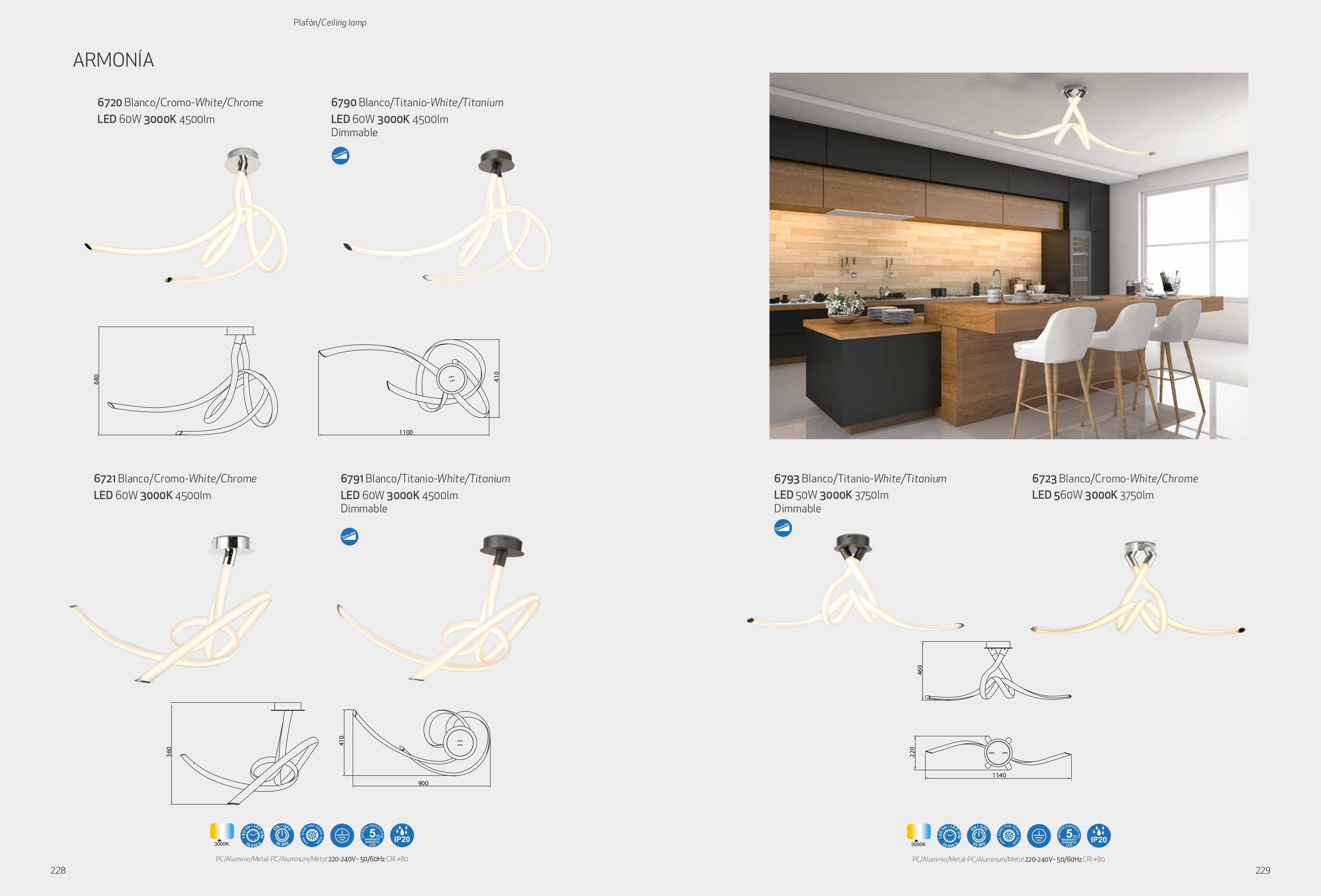 За стила и естетиката на интериора в изключително висока степен допринасят, както цялостната визия и дизайн на осветителното тяло, така и вложените в изработката висококачествени материали, като алуминий с хромово покритие, хромиран метал, полимер в бяло.