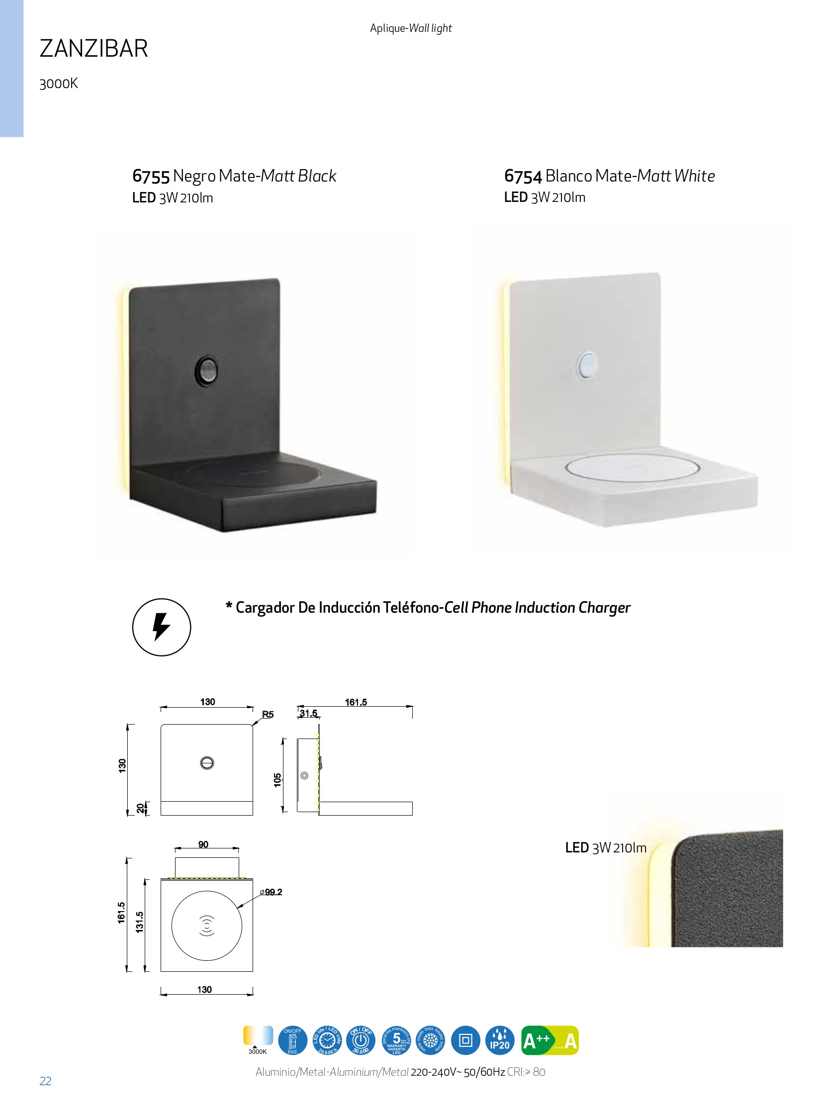 Лед аплик 6754 White Arena 3W 3000K 210lm ZANZIBAR ще осигури комфорт и естетика във всяко помещение, в което се постави. Цялостната визия и дизайн на led лампата и вложените в изработката й материали, като алуминий в матово бял цвят, поставка за индуктивно зареждане на смартфон, ще допринесат за един неповторим стил. Благодарение на дългогодишния опит в производството на лед осветление, качествените материали и строгия контрол на качеството на изработка на производителя Mantra (Испания), 6754 White Arena 3W 3000K 210lm ZANZIBAR е на високо европейско ниво.