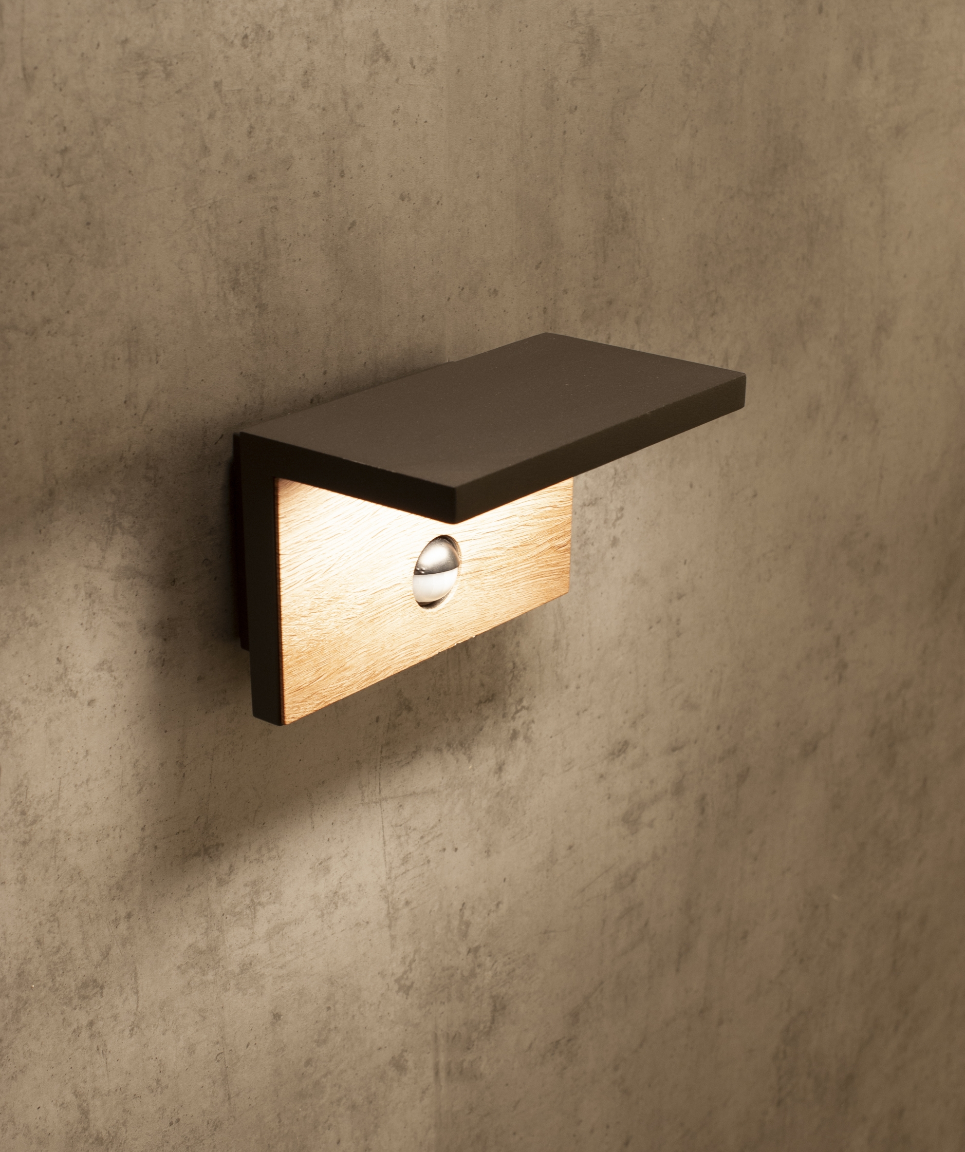 алуминий в тъмно сив цвят, орехово дърво, сензор за движение