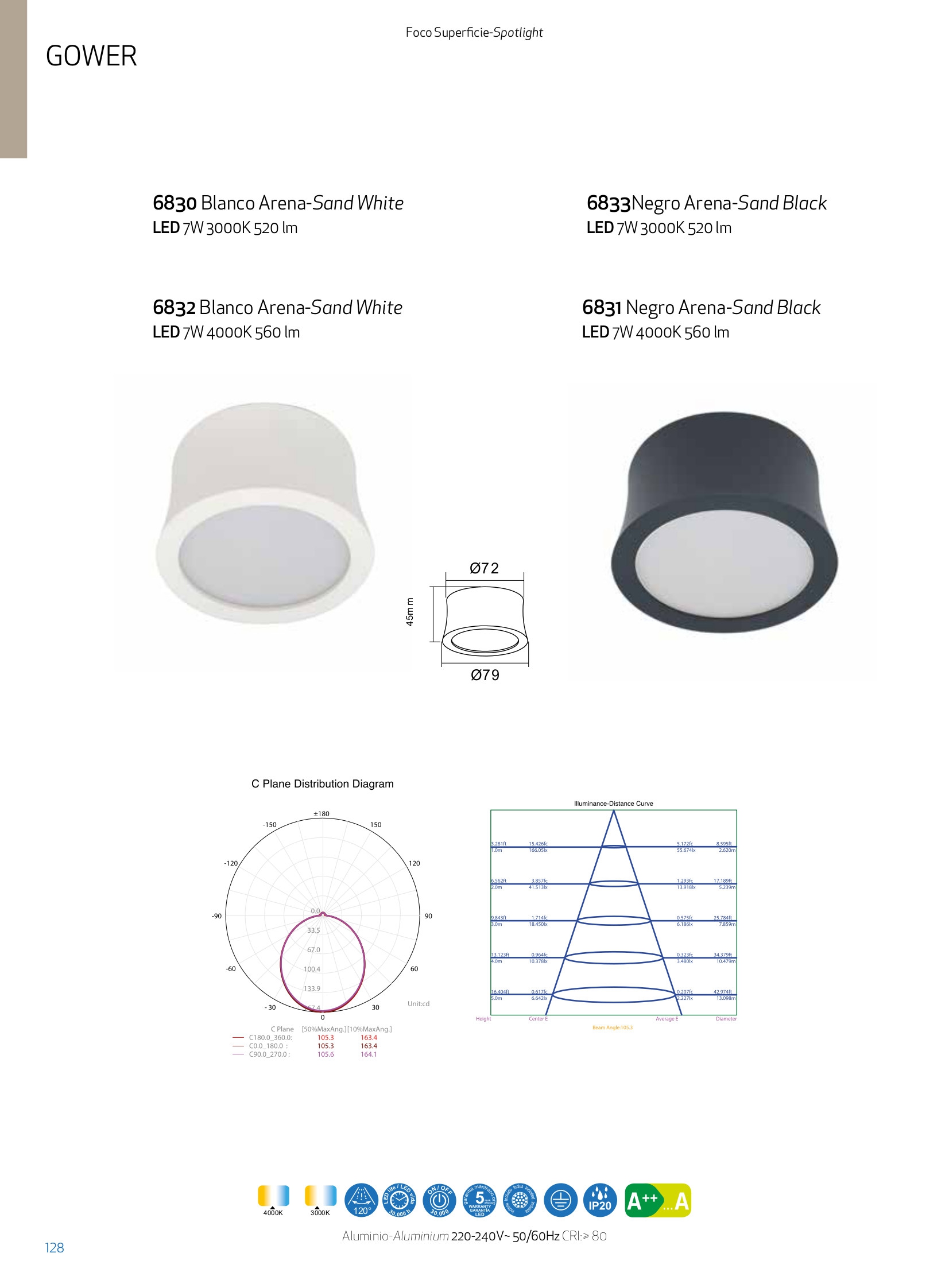 луничка / луна 6830 White Arena 7W 3000K 520lm GOWER
