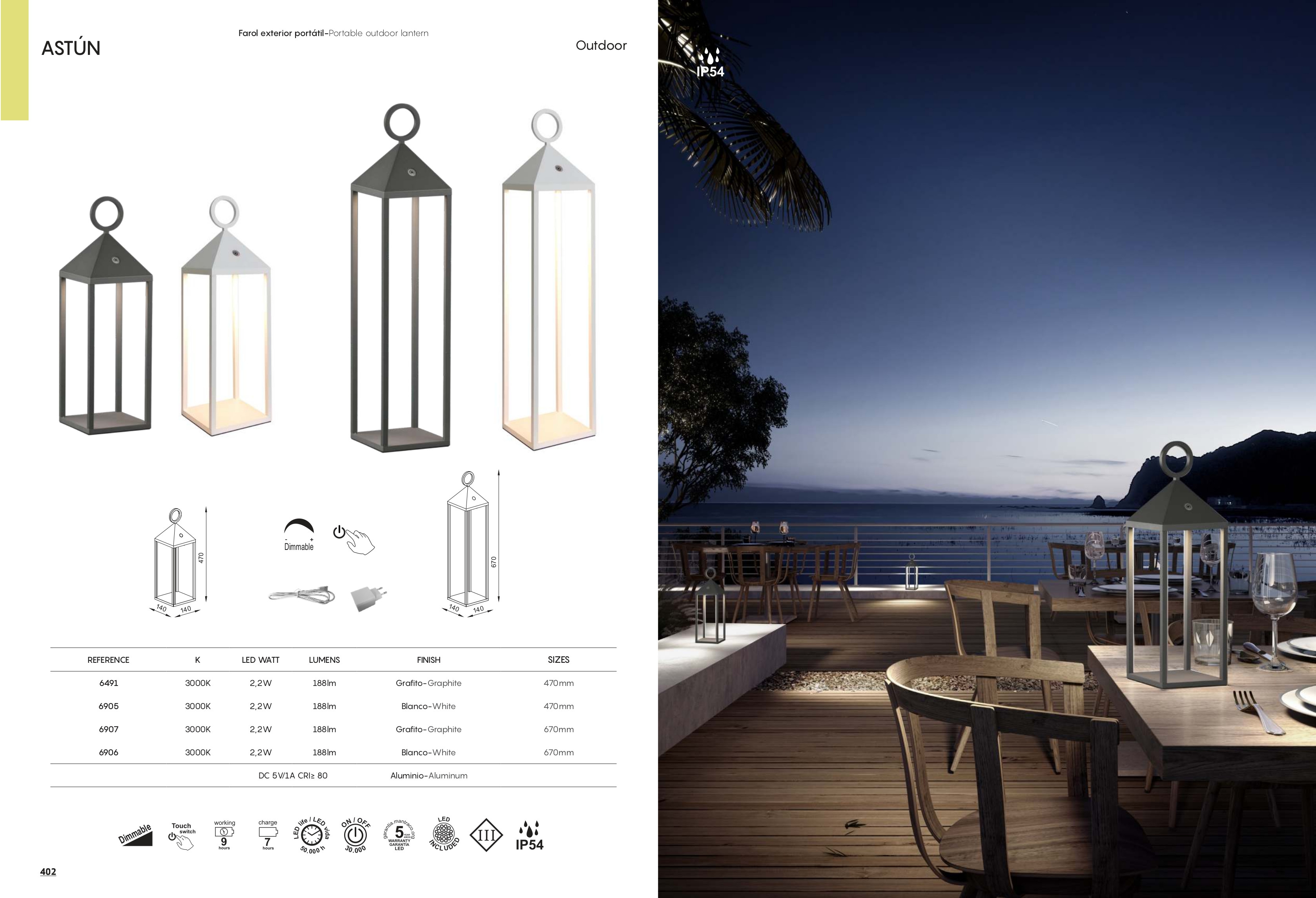 Осветителното тяло ^6907 GRAPHITE LANTERN PORT. LARGE OUTDOOR IP54 2, ще осигури комфорт и естетика във всяко помещение, в което се постави. Цялостната визия и дизайн на лампата и вложените в изработката й материали, като алуминий в цвят графит, преносима зареждаема димируема лампа с touch контрол, ще допринесат за един неповторим стил. Благодарение на дългогодишния опит, качествените материали и строгия контрол на качеството на изработка на производителя Mantra (Испания), ^6907 GRAPHITE LANTERN PORT. LARGE OUTDOOR IP54 2, е на високо европейско ниво.