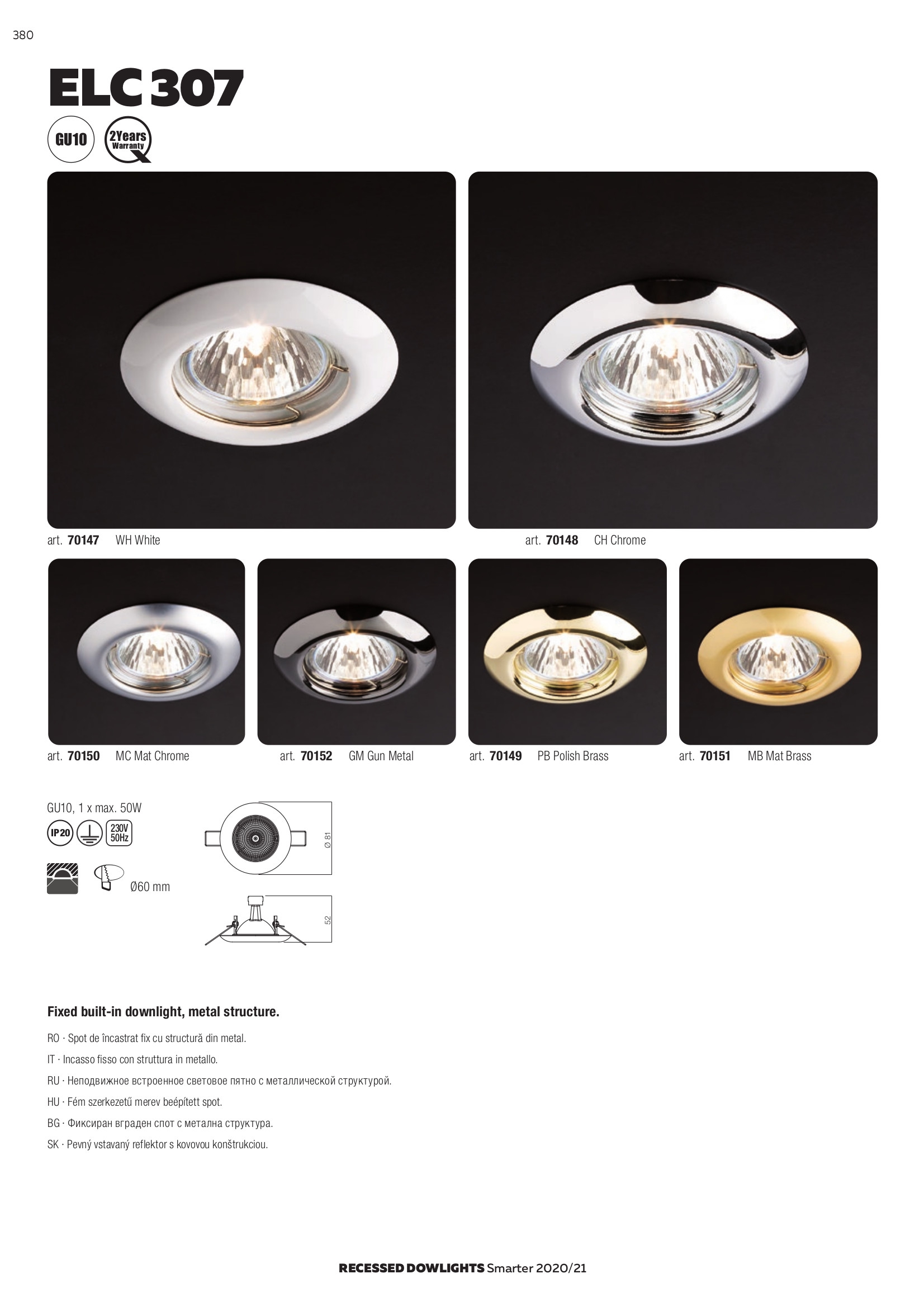 Ел. мощност 1 х 50 W Размери Ф8.1см х 5.2см Производител Redo, Румъния