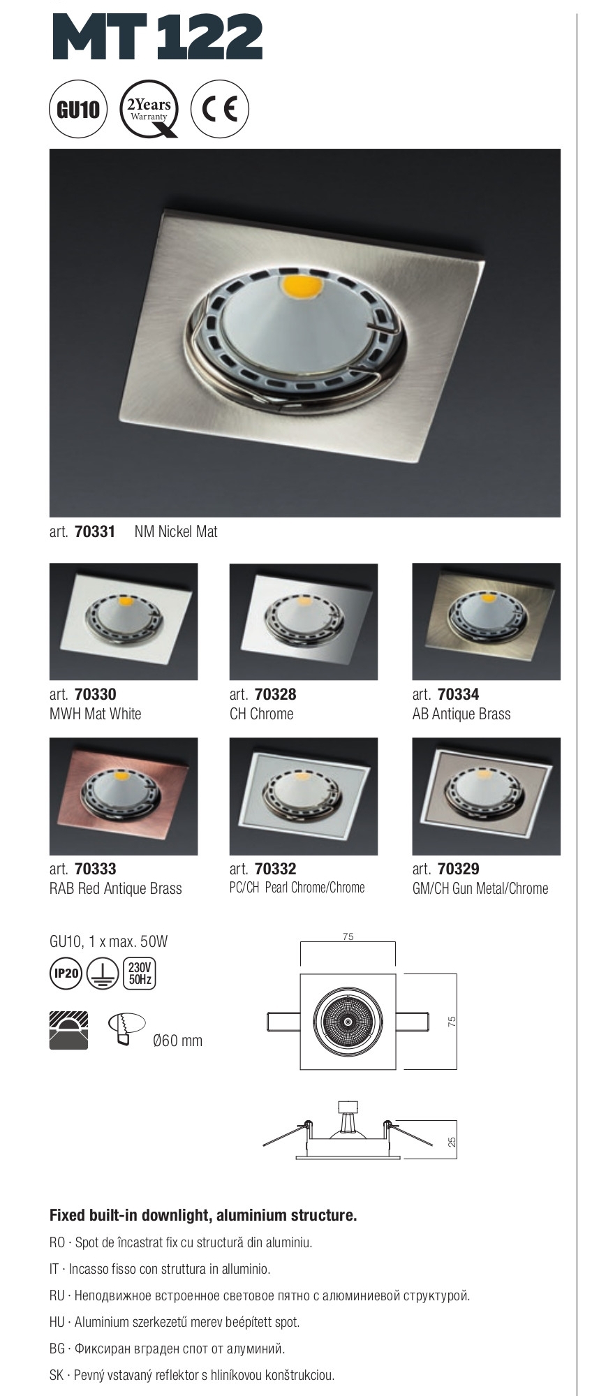 Ел. мощност 1 х 50 W Размери 7.5см x 7.5см x 2.5см Производител Redo, Румъния