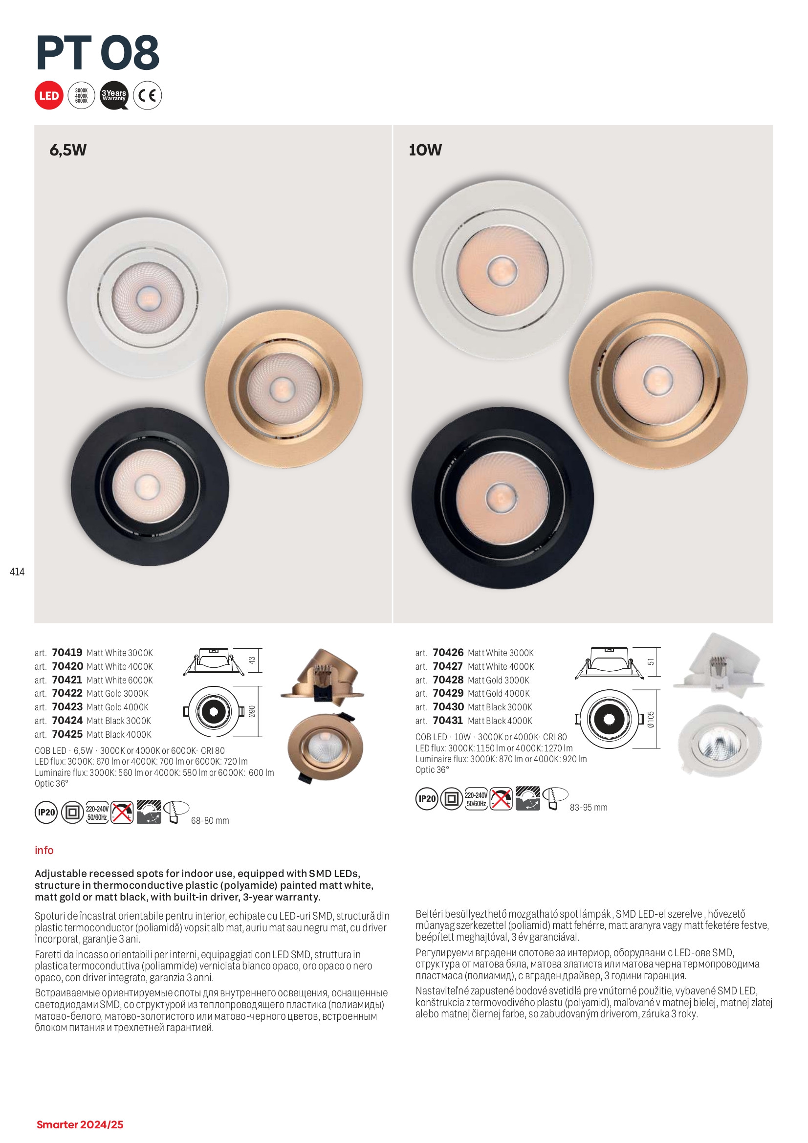Лед луничка / луна 70419 ще осигури комфорт и естетика във всяко помещение, в което се постави. Цялостната визия и дизайн на led лампата и вложените в изработката й материали, като полиамид в матово бяло, регулируем ъгъл на насочване на светлината 36°, ще допринесат за един неповторим стил. Благодарение на дългогодишния опит в производството на лед осветление, качествените материали и строгия контрол на качеството на изработка на дизайнерската линия Redo Smarter на производителя Redo (Румъния), 70419 е на високо европейско ниво.