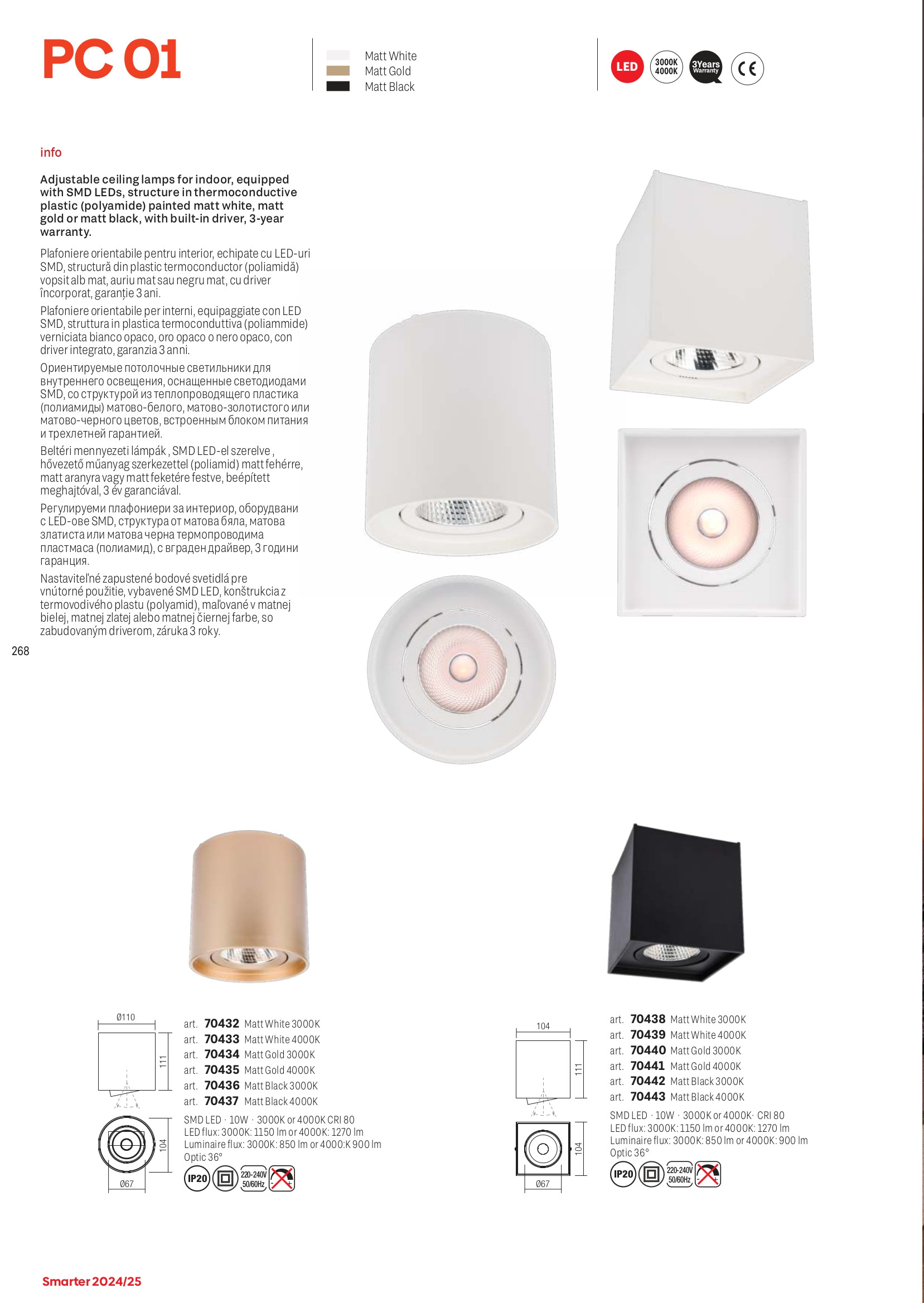 Лед луничка / луна 70441 ще осигури комфорт и естетика във всяко помещение, в което се постави. Цялостната визия и дизайн на led лампата и вложените в изработката й материали, като полиамид в цвят матово злато, възможност за насочване на светлинния лъч до 36° от вертикала, ще допринесат за един неповторим стил. Благодарение на дългогодишния опит в производството на лед осветление, качествените материали и строгия контрол на качеството на изработка на дизайнерската линия Redo Smarter на производителя Redo (Румъния), 70441 е на високо европейско ниво.